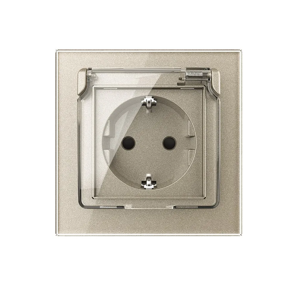 Розетка электрическая 16A с водонепроницаемой крышкой Livolo, 1 пост, цвет шампань
