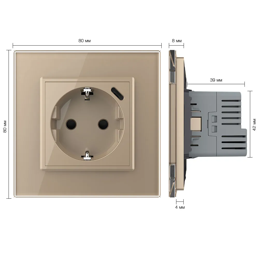 Розетка электрическая с USB type-C, блоком питания 18W Livolo на 1 пост со стеклянной рамкой LIVOLO используется для подключения к электрической сети переменного тока 110-250 В, 50-60 Гц различных приборов и агрегатов бытового и аналогичного назначения. USB type C розетка мощностью до 18 Вт подходит для быстрой зарядки смартфонов, планшетов и другой электроники. Поддерживаются протоколы подзарядки PD3.0, QC3.0 5-12V, HUAWEI FCP 5-9V, AFC 5-12V, APPLE 5V / 2.4A, BC1.2 DCP и другие. USB type-C оснащен шестью видами защиты: от перегрузок, от перегрева, от короткого замыкания, от электрического перенапряжения, электромагнитной защитой и умным распознаванием подключенного устройства. После подключения устройства протокол подзарядки, напряжение и сила тока определяется автоматически.