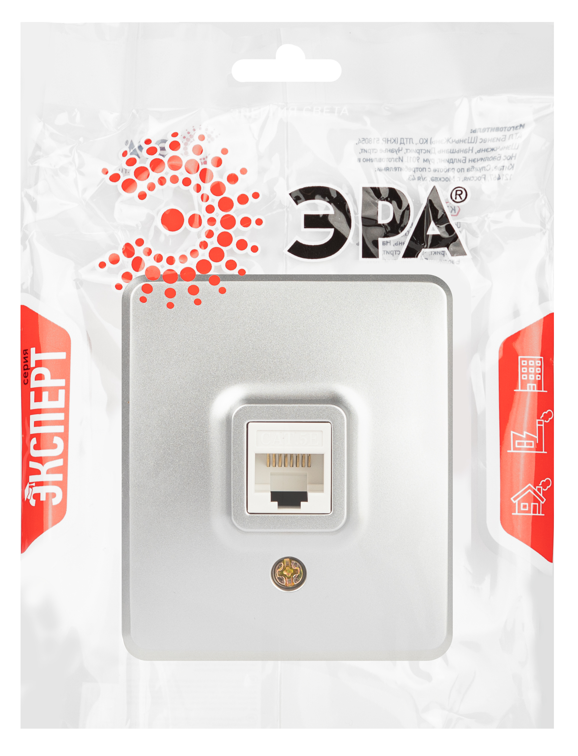 Розетка одноместная RJ45 серии Эра Эксперт открытой установки цвет алюминий 11-3203-03. Выполнена из качественного поликарбоната, оснащён уникальными винтовыми клеммами ЭКСПЕРТ для максимально качественного зажима кабеля в механизме.