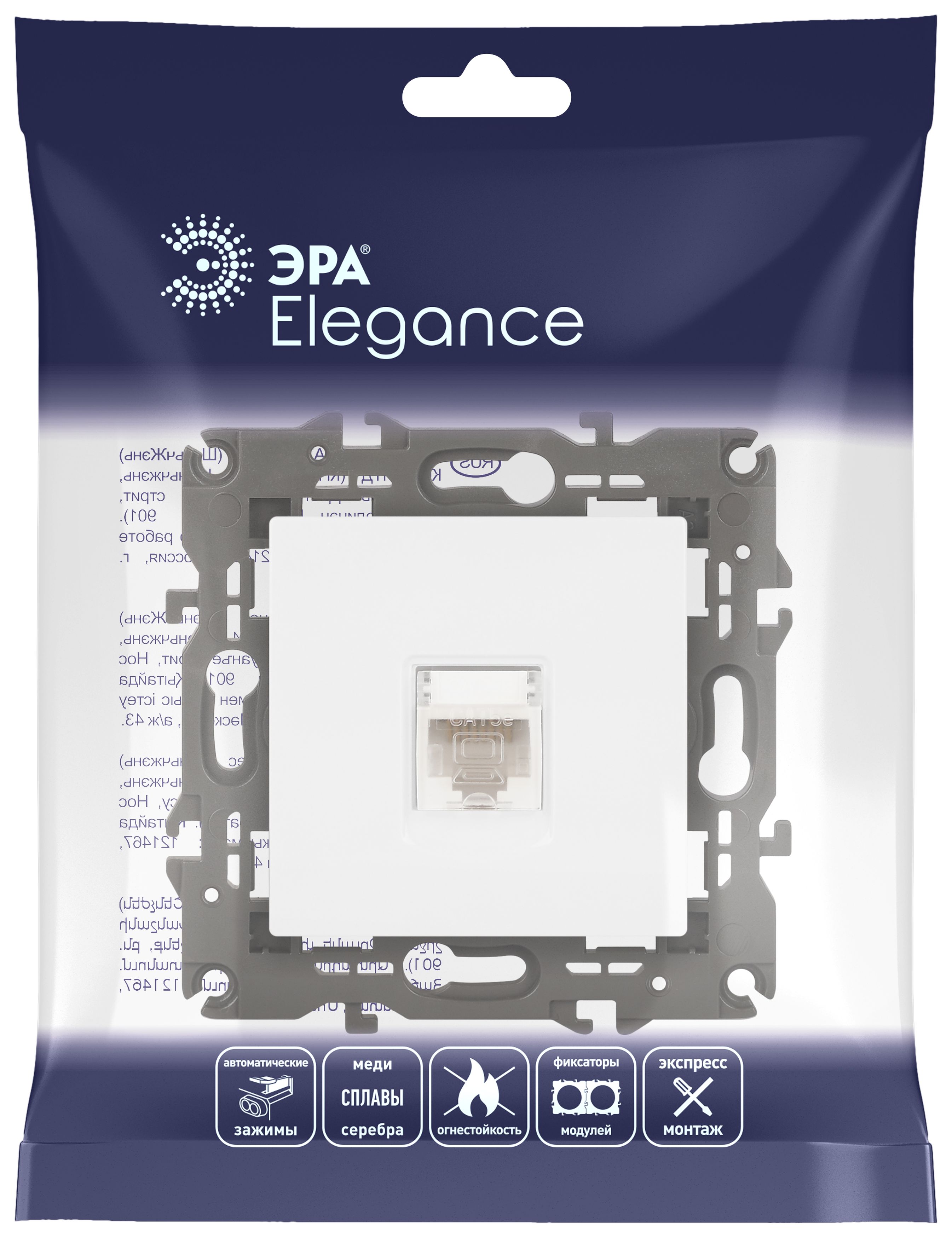 Розетка информационная RJ45 серии Эра Elegance цвет белый матовый 14-3107-01М. Рамки приобретаются отдельно.