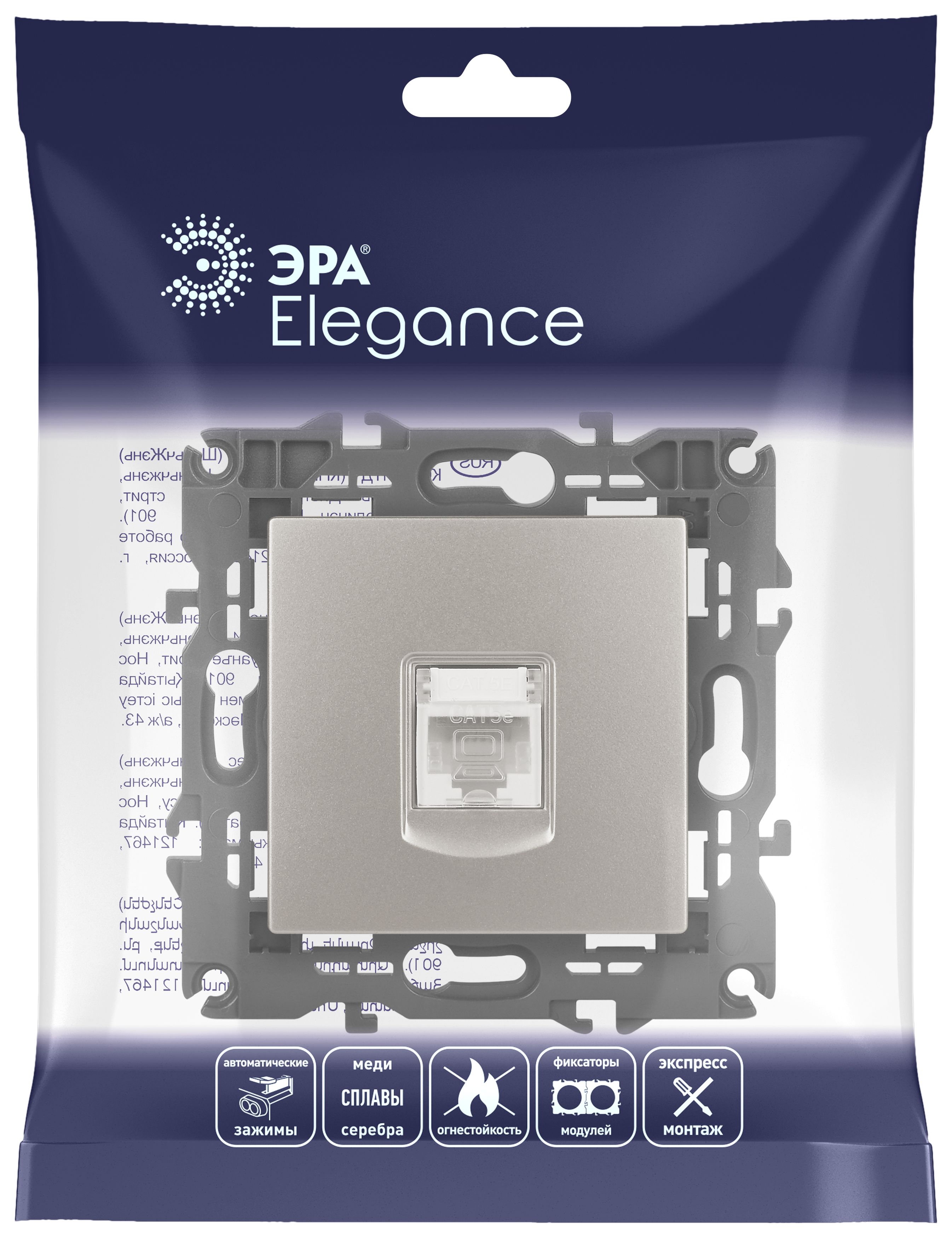 Розетка информационная RJ45 серии Эра Elegance цвет титан 14-3107-16. Рамки приобретаются отдельно.