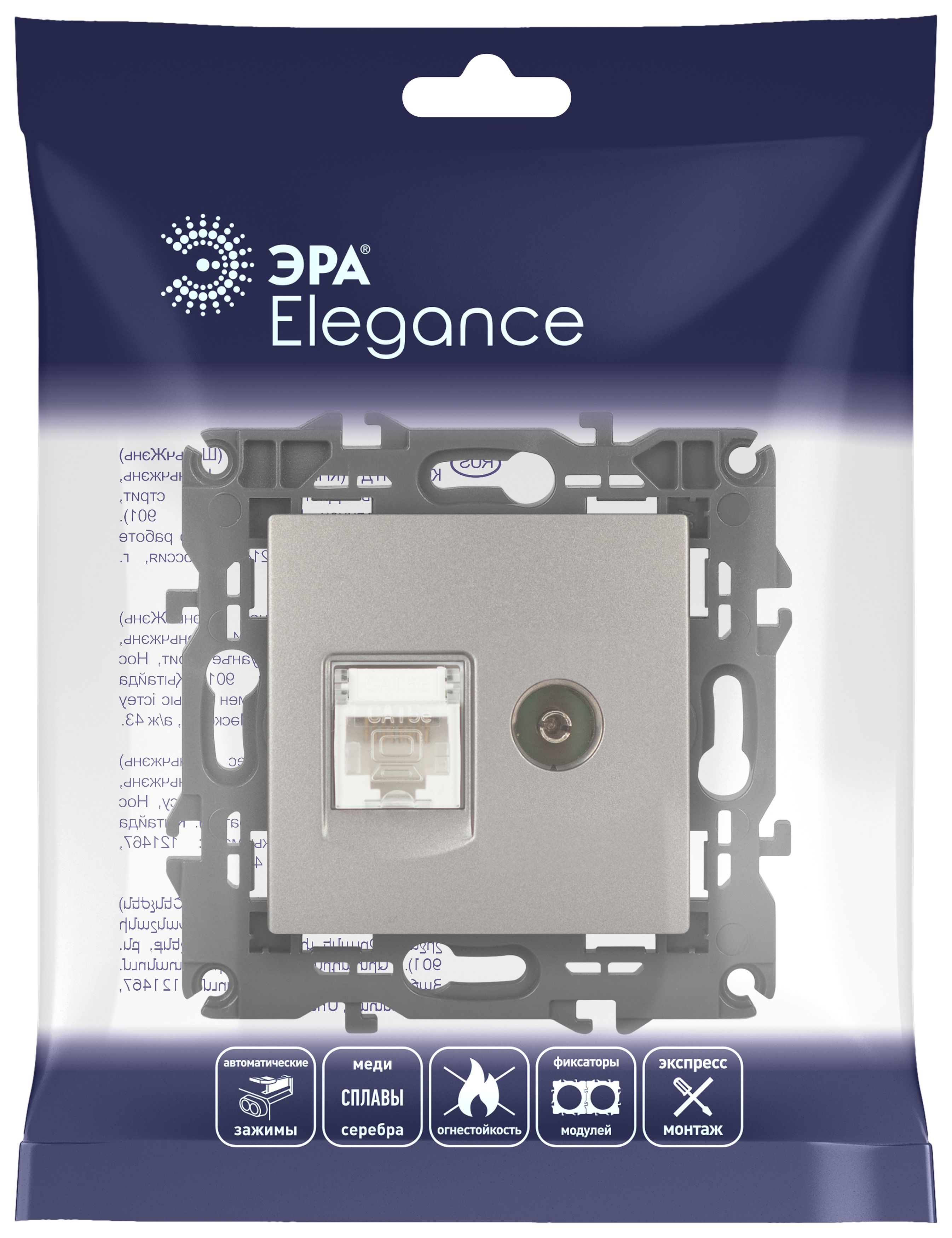 Розетка телевизионная + информационная RJ45+TV серии Эра Elegance цвет титан 14-3110-16. Рамки приобретаются отдельно.