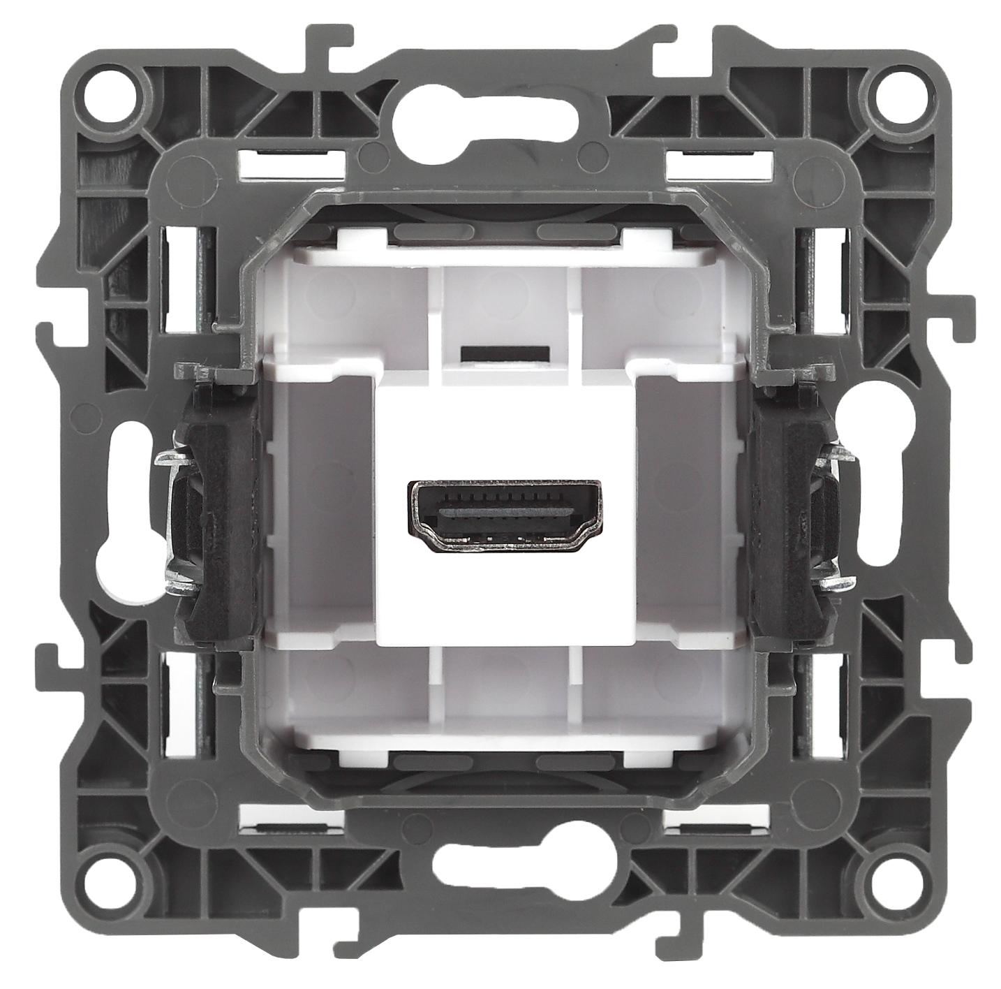 Розетка HDMI серии Эра 12 скрытой установки механизм цвет чёрный 12-3114-06. Сделана из поликарбоната. Монтаж в подрозетник производится и на лапки, и на винты. Рамки приобретаются отдельно. Рамки Эра 12: 1 пост 12-5001-хх, 2 поста 12-5002-хх, 3 поста 12-5003-хх, 4 поста 12-5004-хх, 5 постов 12-5005-хх. Рамки Эра 12 Сатин: 1 пост 12-5101-хх, 2 поста 12-5102-хх, 3 поста 12-5103-хх, 4 поста 12-5104-хх, 5 постов - 12-5105-хх (хх - код цвета: 01-белый, 02-слоновая кость, 03-алюминий, 04-шампань, 05-антрацит, 06-чёрный, 07-ольха(белёный дуб-сатин), 08-вишня, 09-дуб, 10-венге, 11-сосна, 21-жёлтый, 22-оранжевый, 23-красный, 24-охра, 25-бордо, 26-лайм, 27-зелёный, 28-голубой, 29-синий).
