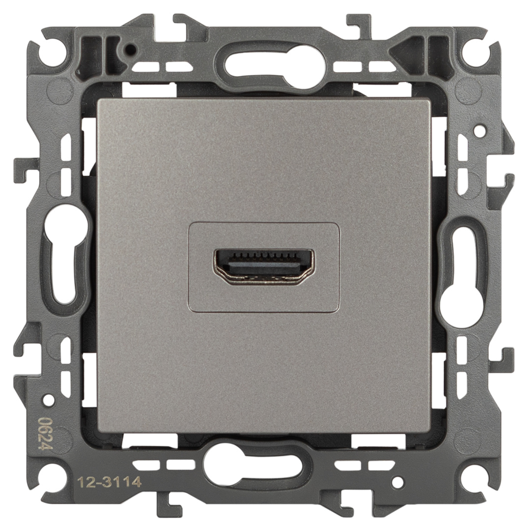 Розетка HDMI серии Эра 12 скрытой установки механизм цвет титан 12-3114-16. Сделана из поликарбоната. Монтаж в подрозетник производится и на лапки, и на винты. Рамки приобретаются отдельно.