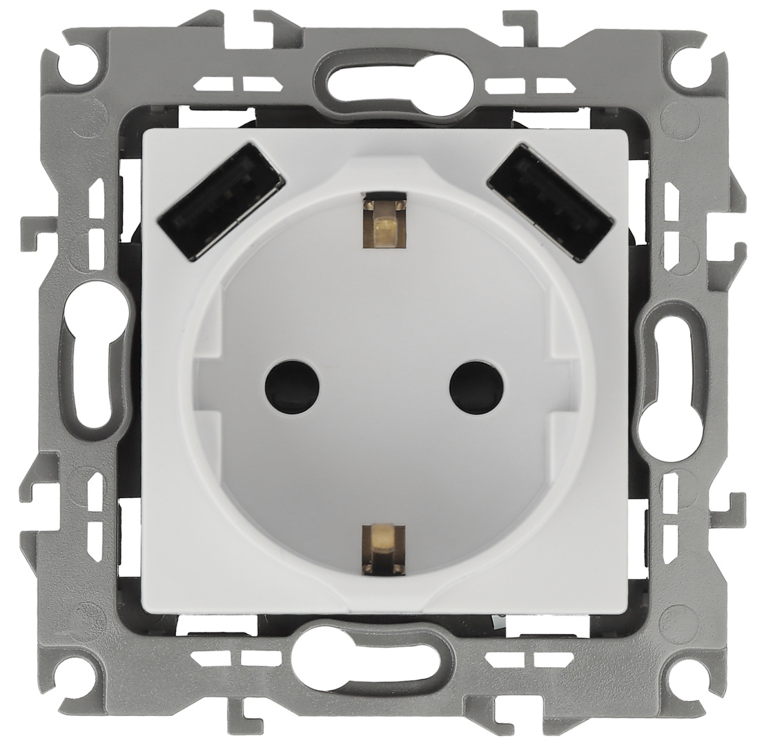 Розетка с заземлением с USB со шторками серии Эра 12 скрытой установки механизм цвет белый 12-4109-01. Номинальные характеристики 16А 250В/3А-5В . Сделана из поликарбоната. Монтаж в подрозетник производится и на лапки, и на винты. Рамки приобретаются отдельно. Рамки Эра 12: 1 пост 12-5001-хх, 2 поста 12-5002-хх, 3 поста 12-5003-хх, 4 поста 12-5004-хх, 5 постов 12-5005-хх. Рамки Эра 12 Сатин: 1 пост 12-5101-хх, 2 поста 12-5102-хх, 3 поста 12-5103-хх, 4 поста 12-5104-хх, 5 постов - 12-5105-хх (хх - код цвета: 01-белый, 02-слоновая кость, 03-алюминий, 04-шампань, 05-антрацит, 06-чёрный, 07-ольха(белёный дуб-сатин), 08-вишня, 09-дуб, 10-венге, 11-сосна, 21-жёлтый, 22-оранжевый, 23-красный, 24-охра, 25-бордо, 26-лайм, 27-зелёный, 28-голубой, 29-синий).