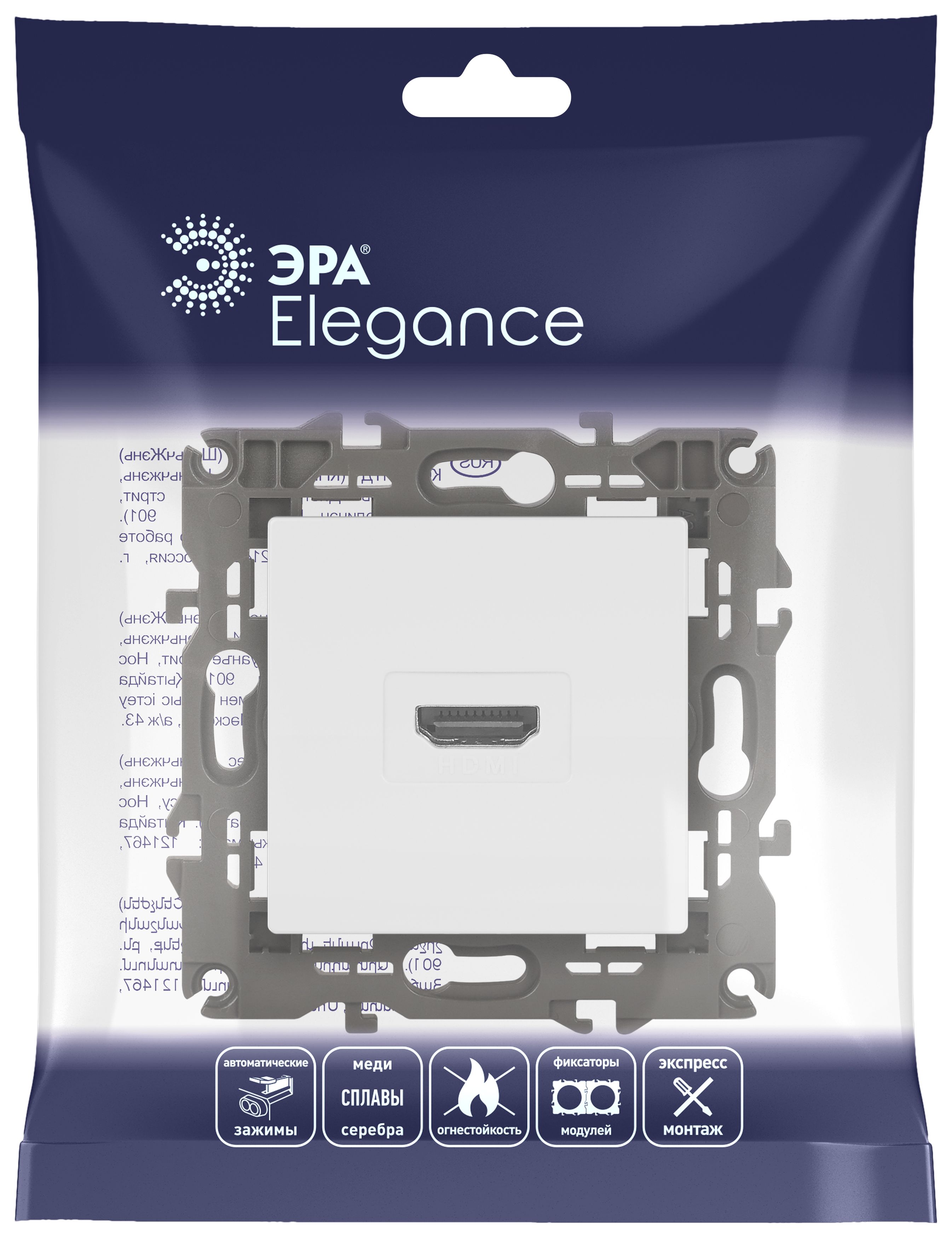 Розетка HDMI серии Эра Elegance цвет белый матовый 14-3114-01М. Рамки приобретаются отдельно.
