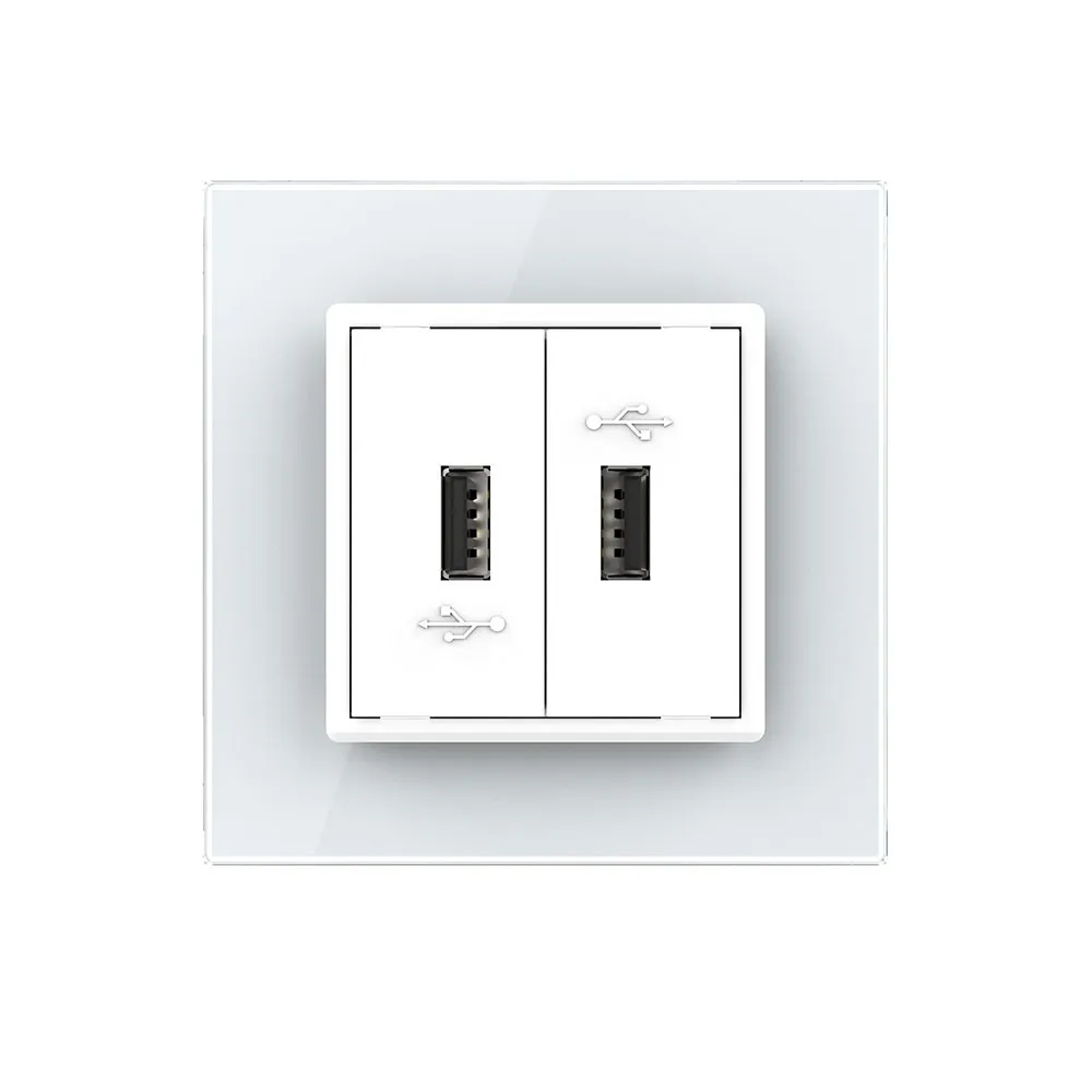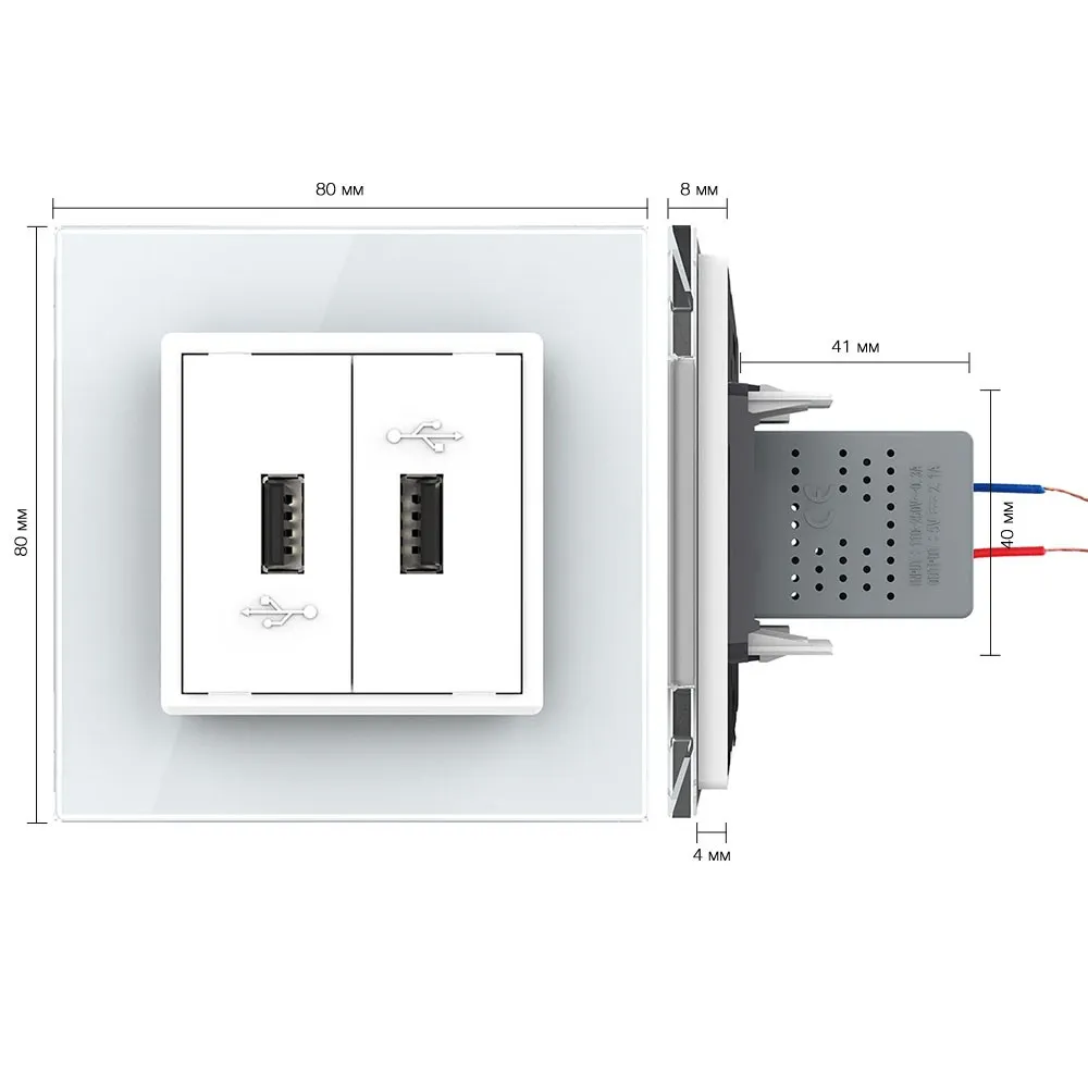 Розетка с двумя USB type-A, блоком питания 5В 2.1А Livolo на 1 пост со стеклянной рамкой LIVOLO используется для подключения подзарядки гаджетов, поддерживающих USB-интерфейс: планшеты, электронные книги, мобильные телефоны и другая цифровая техника.