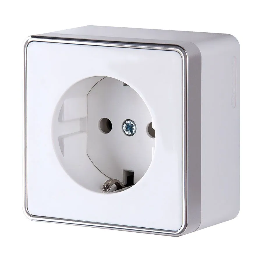 Накладной механизм не требуют дополнительных работ по монтажу отверстий и его можно устанавливать на любые поверхности. Матовый эффект придает поверхности легкую шероховатость, а декоративная хромированная вставка подчеркивает строгую форму и добавляет розетке оригинальности.