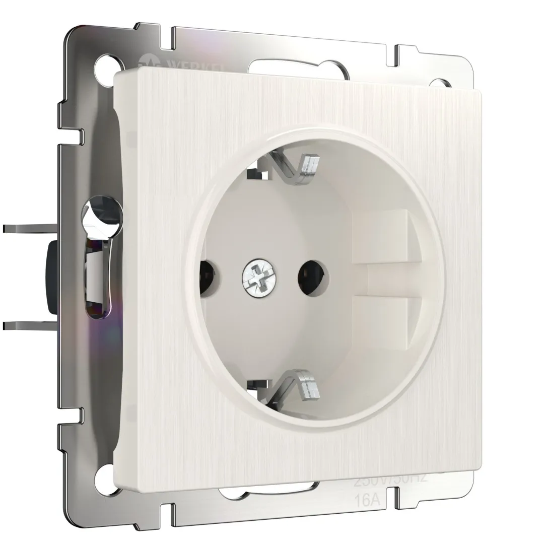Внешняя лицевая панель выполнена из высококачественного поликарбоната, устойчивого к высоким температурам. Встраиваемая розетка с заземлением совместима со всеми рамками из коллекций Werkel™, характеризуется удобством использования и обеспечивает надежный контакт.