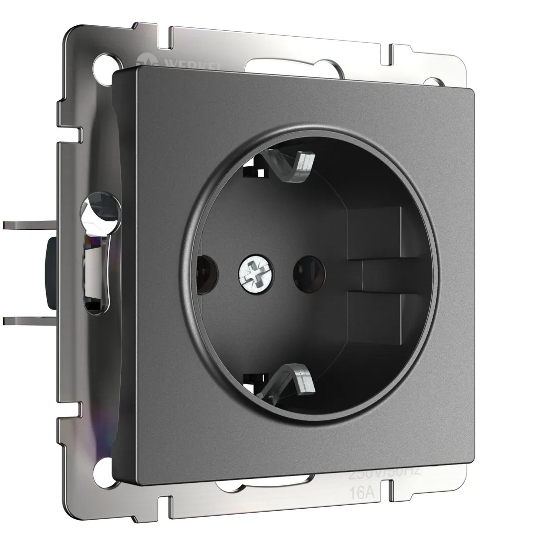 Внешняя лицевая панель выполнена из высококачественного поликарбоната, устойчивого к высоким температурам. Встраиваемая розетка с заземлением совместима со всеми рамками из коллекций Werkel™, характеризуется удобством использования и обеспечивает надежный контакт.