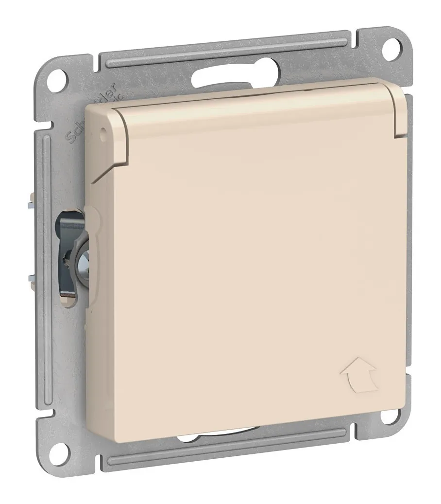 Розетка Schneider Electric ATLASDESIGN, скрытый монтаж, с заземлением, с крышкой, со шторками, винтовые клеммы, бежевый ATN000246