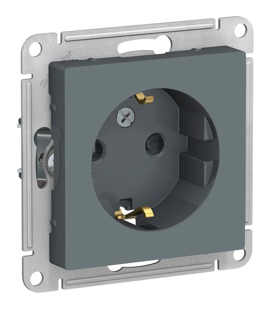 Розетка Schneider Electric ATLASDESIGN, скрытый монтаж, с заземлением, карбон