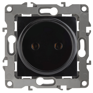 Розетка серии Эра 12 скрытой установки механизм цвет чёрный 12-2105-06. Номинальные характеристики 16А 250В . Сделана из поликарбоната, оснащёна автоматическими клеммами для быстрй и надёжной фиксации жил кабеля в механиме. Парные клеммы обеспечивают соединение шлейфом. Монтаж в подрозетник производится и на лапки, и на винты. Рамки приобретаются отдельно. Рамки Эра 12: 1 пост 12-5001-хх, 2 поста 12-5002-хх, 3 поста 12-5003-хх, 4 поста 12-5004-хх, 5 постов 12-5005-хх. Рамки Эра 12 Сатин: 1 пост 12-5101-хх, 2 поста 12-5102-хх, 3 поста 12-5103-хх, 4 поста 12-5104-хх, 5 постов - 12-5105-хх (хх - код цвета: 01-белый, 02-слоновая кость, 03-алюминий, 04-шампань, 05-антрацит, 06-чёрный, 07-ольха(белёный дуб-сатин), 08-вишня, 09-дуб, 10-венге, 11-сосна, 21-жёлтый, 22-оранжевый, 23-красный, 24-охра, 25-бордо, 26-лайм, 27-зелёный, 28-голубой, 29-синий).