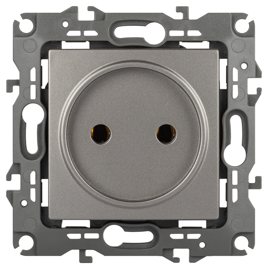 Розетка серии Эра 12 скрытой установки механизм цвет титан 12-2105-16. Номинальные характеристики 16А 250В. Сделана из поликарбоната, оснащена автоматическими клеммами для быстрой и надёжной фиксации жил кабеля в механизме. Парные клеммы обеспечивают соединение шлейфом. Монтаж в подрозетник производится и на лапки, и на винты. Рамки приобретаются отдельно.