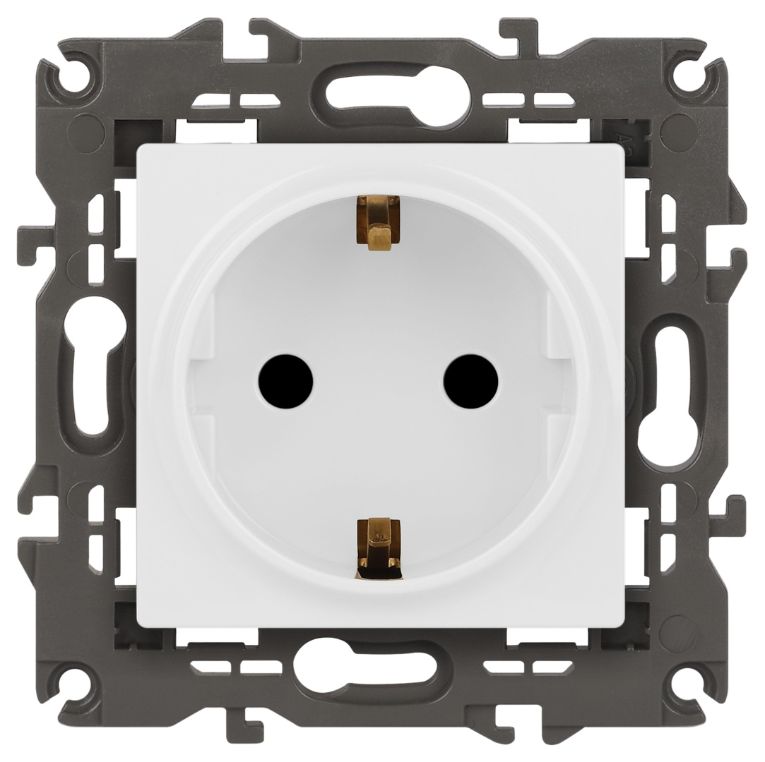Розетка с заземлением со шторками Эра Elegance белый 14-2102-01. Оснащёна автоматическими клеммами для надёжной фиксации жил кабеля в механизме. Рамки приобретаются отдельно. Рамки Эра Elegance ПЛАСТИК: 1 пост 14-5001-хх, 2 поста 14-5002-хх, 3 поста 14-5003-хх, 4 поста 14-5004-хх, 5 постов 14-5005-хх; СТЕКЛО: 1 пост 14-5101-хх, 2 поста 14-5102-хх, 3 поста 14-5103-хх, 4 поста 14-5104-хх; МЕТАЛЛ: 1 пост 14-5201-хх, 2 поста 14-5202-хх, 3 поста 14-5203-хх, 4 поста 14-5204-хх; ДЕРЕВО: 1 пост 14-5301-хх, 2 поста 14-5302-хх, 3 поста 14-5303-хх, 4 поста 14-5304-хх (хх - код цвета: 00-прозрачный, 01-белый, белёный дуб, 02-слоновая кость, 03-алюминий, 04-шампань, 05-чёрный, чёрное дерево, 07-ясень, 09-дуб, 10-венге, 11-клён, 14-медь, 21-жёлтый, 22-оранжевый, 23-красный, 25-бордо, 26-лайм, 27-зелёный, 28-голубой, 29-синий, 30-розовый, 31-мокко, 32-серый, 41-сталь, 42-титан).