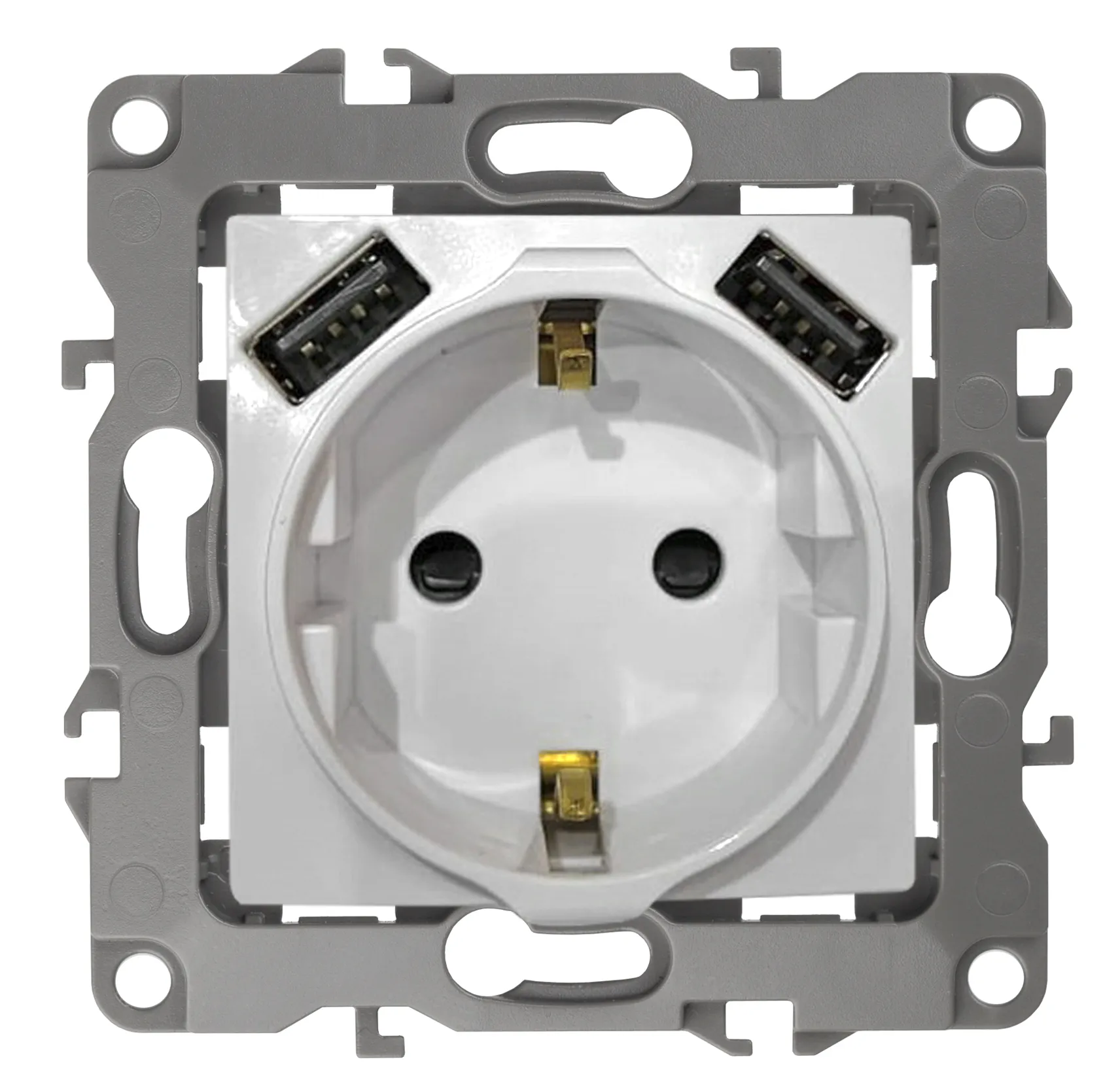 Розетка с заземлением с USB со шторками серии Эра 12 скрытой установки механизм цвет бронза 12-4109-13. Номинальные характеристики 16А 250В/3А-5В . Сделана из поликарбоната. Монтаж в подрозетник производится и на лапки, и на винты. Рамки приобретаются отдельно. Рамки Эра 12: 1 пост 12-5001-хх, 2 поста 12-5002-хх, 3 поста 12-5003-хх, 4 поста 12-5004-хх, 5 постов 12-5005-хх. Рамки Эра 12 Сатин: 1 пост 12-5101-хх, 2 поста 12-5102-хх, 3 поста 12-5103-хх, 4 поста 12-5104-хх, 5 постов - 12-5105-хх (хх - код цвета: 01-белый, 02-слоновая кость, 03-алюминий, 04-шампань, 05-антрацит, 06-чёрный, 07-ольха(белёный дуб-сатин), 08-вишня, 09-дуб, 10-венге, 11-сосна, 21-жёлтый, 22-оранжевый, 23-красный, 24-охра, 25-бордо, 26-лайм, 27-зелёный, 28-голубой, 29-синий).