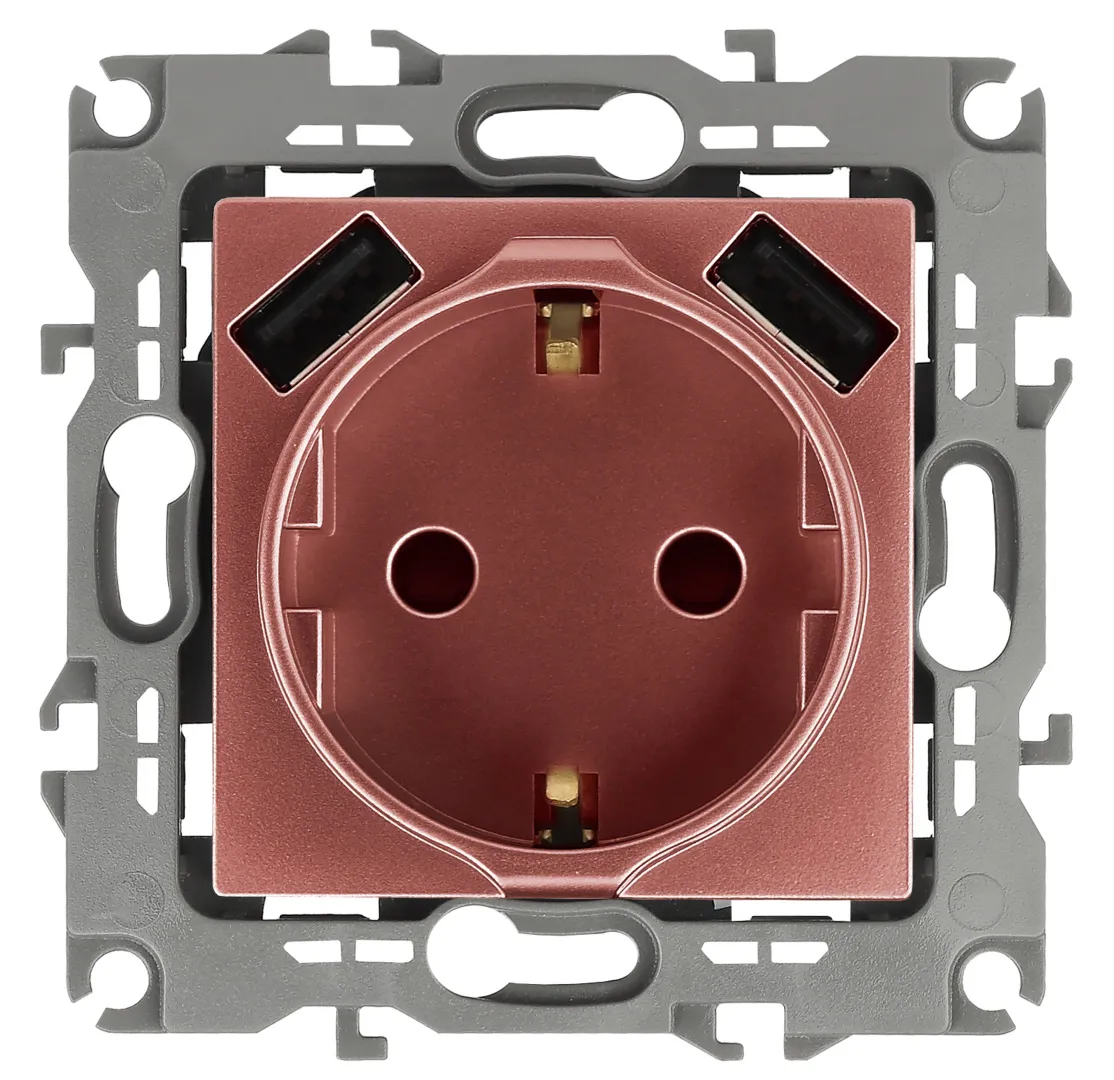 Розетка с заземлением с USB со шторками серии Эра 12 скрытой установки механизм цвет медь 12-4109-14. Номинальные характеристики 16А 250В/3А-5В . Сделана из поликарбоната. Монтаж в подрозетник производится и на лапки, и на винты. Рамки приобретаются отдельно. Рамки Эра 12: 1 пост 12-5001-хх, 2 поста 12-5002-хх, 3 поста 12-5003-хх, 4 поста 12-5004-хх, 5 постов 12-5005-хх. Рамки Эра 12 Сатин: 1 пост 12-5101-хх, 2 поста 12-5102-хх, 3 поста 12-5103-хх, 4 поста 12-5104-хх, 5 постов - 12-5105-хх (хх - код цвета: 01-белый, 02-слоновая кость, 03-алюминий, 04-шампань, 05-антрацит, 06-чёрный, 07-ольха(белёный дуб-сатин), 08-вишня, 09-дуб, 10-венге, 11-сосна, 21-жёлтый, 22-оранжевый, 23-красный, 24-охра, 25-бордо, 26-лайм, 27-зелёный, 28-голубой, 29-синий).