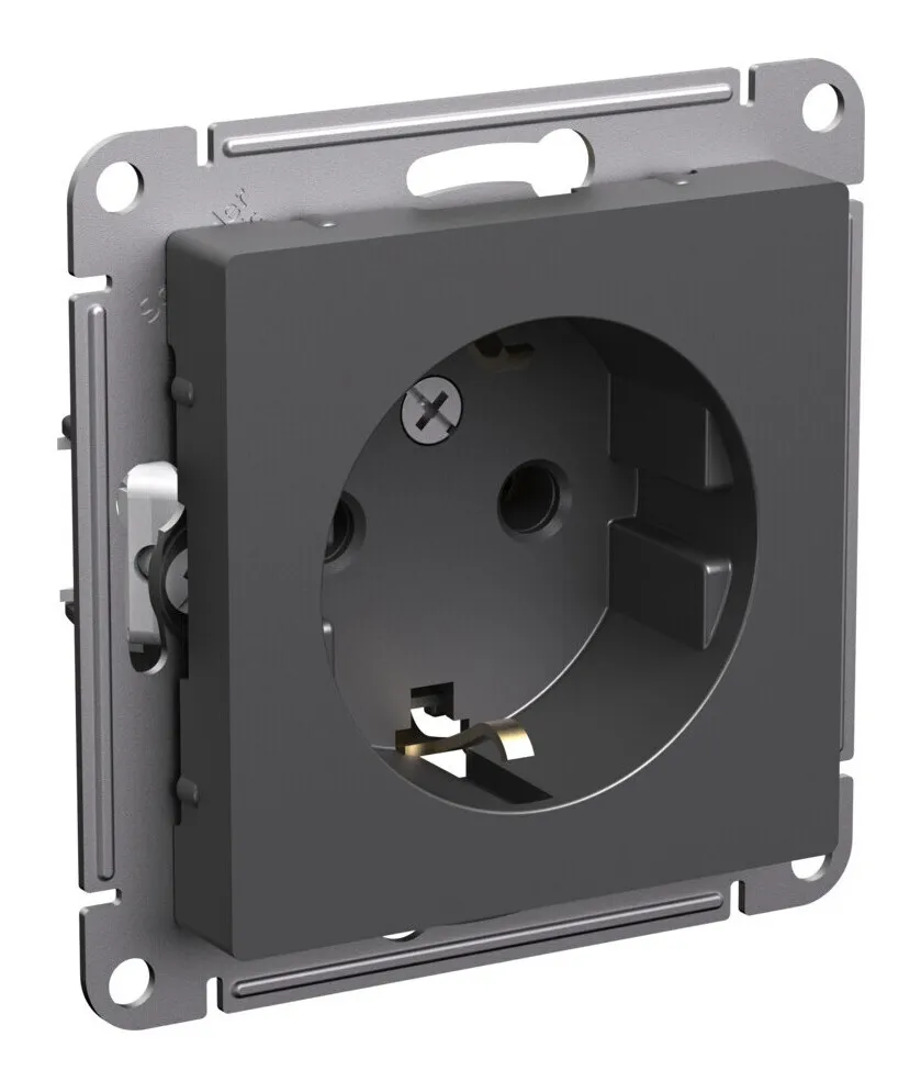 Розетка Systeme Electric ATLASDESIGN, скрытый монтаж, с заземлением, базальт, ATN001443