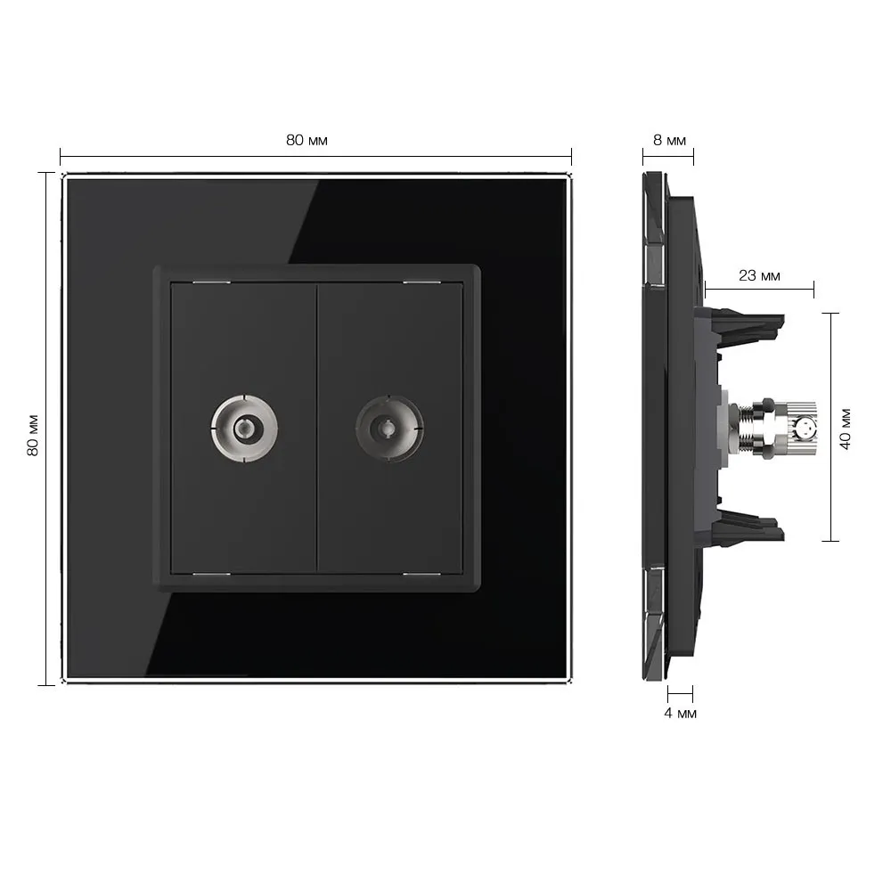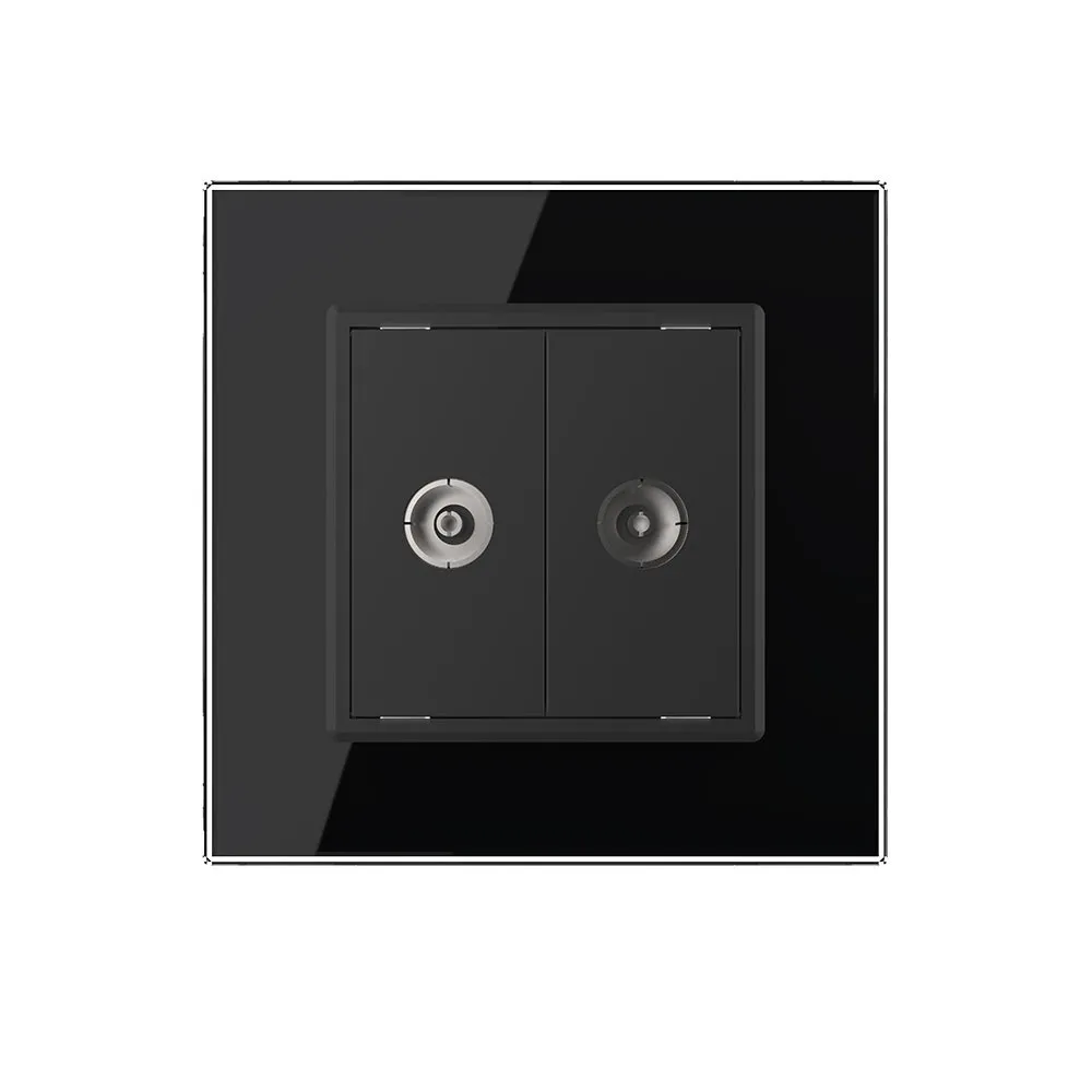 Розетка телевизионная двойная Livolo на 1 пост со стеклянной рамкой LIVOLO используется для подключения телевизионного кабеля при разводке кабельной сети в доме по принципу «звезда», т.е. кабель от антенны подключается к делителю, а от него лучами расходится по комнатам к розеткам.