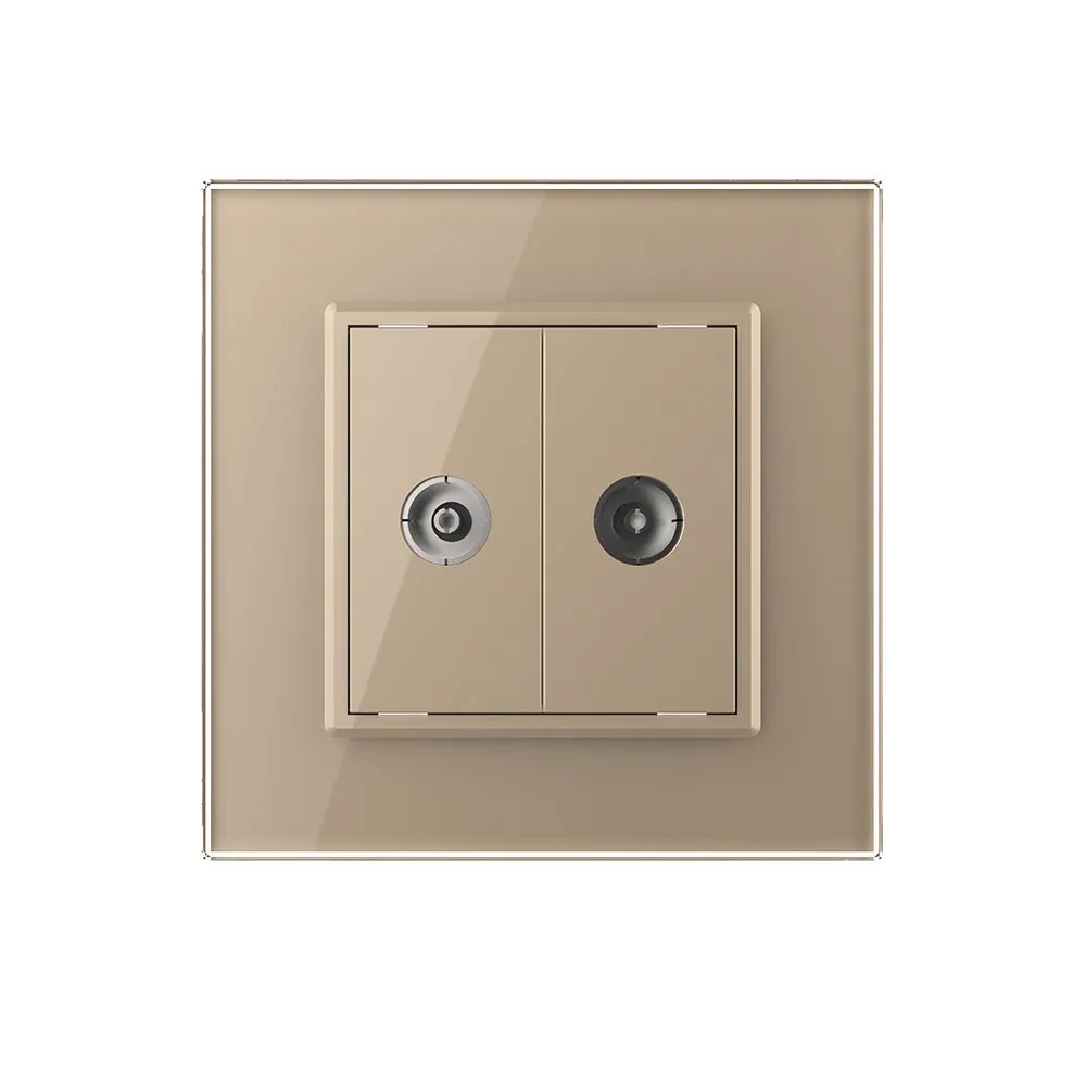 Розетка телевизионная двойная Livolo на 1 пост со стеклянной рамкой LIVOLO используется для подключения телевизионного кабеля при разводке кабельной сети в доме по принципу «звезда», т.е. кабель от антенны подключается к делителю, а от него лучами расходится по комнатам к розеткам.