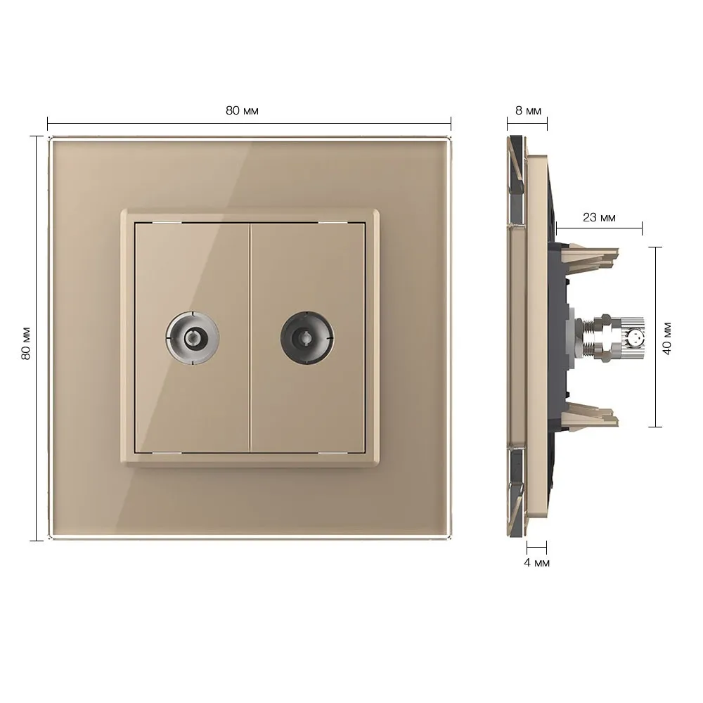 Розетка телевизионная двойная Livolo, 1 пост, цвет шампань