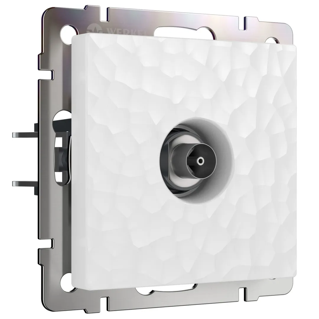 Классическая оконечная ТВ-розетка в белом цвете W1283001 используется для подключения к телевизионной сети и передачи сигнала в исполнительное устройство, воспроизводящее видео изображение.