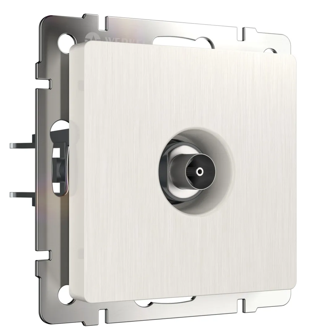 Классическая оконечная ТВ-розетка цвета перламутровый рифленый WL13-TV используется для подключения к телевизионной сети и передачи сигнала в исполнительное устройство, воспроизводящее видео изображение. Оконечная ТВ-розетка предназначена для установки в конце линии из проходных ТВ-розеток, завершая цепочку.