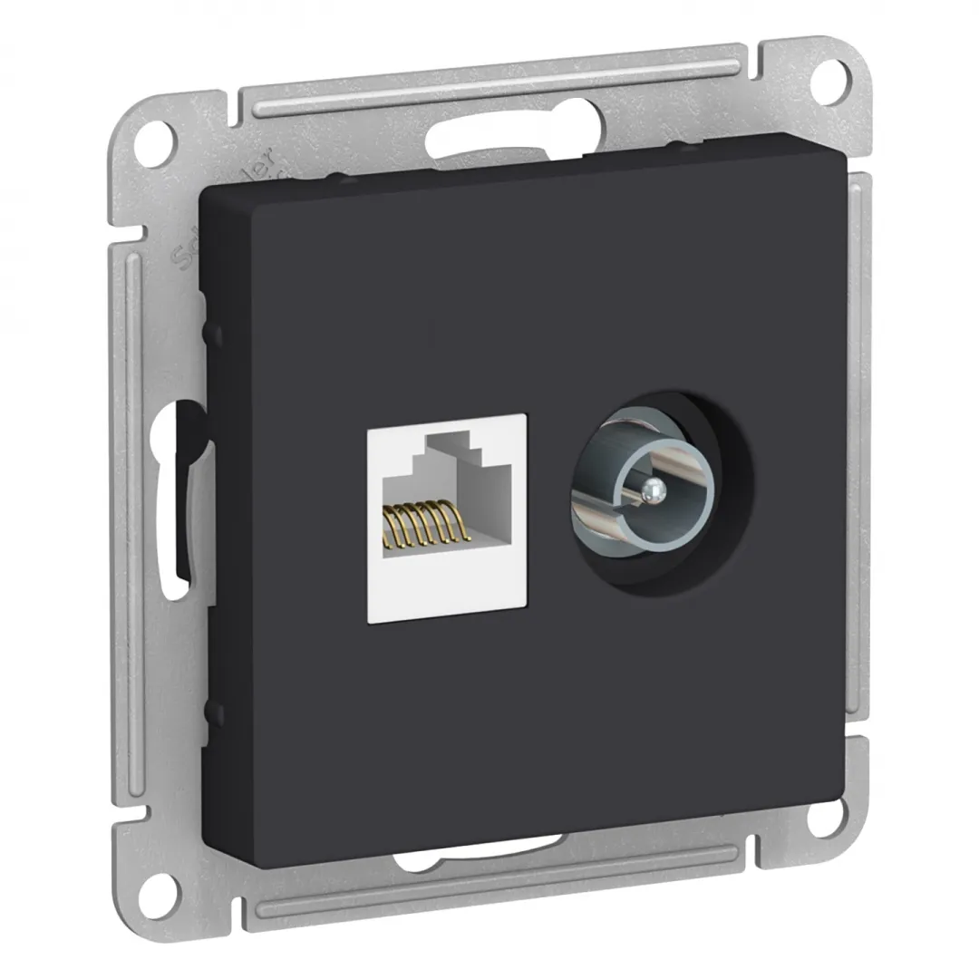 Розетка TV+RJ45 Cat.5 Schneider Electric ATLASDESIGN, оконечная, карбон ATN001089