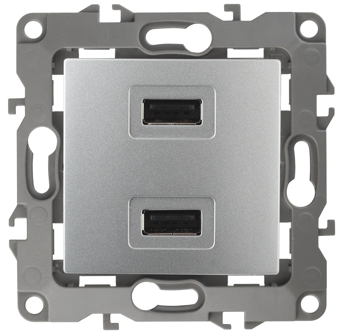 Устройство зарядное USB серии Эра 12 скрытой установки механизм цвет алюминий 12-4110-03. Номинальные характеристики 5В-2100мА. Сделано из поликарбоната. Монтаж в подрозетник производится и на лапки, и на винты. Рамки приобретаются отдельно. Рамки Эра 12: 1 пост 12-5001-хх, 2 поста 12-5002-хх, 3 поста 12-5003-хх, 4 поста 12-5004-хх, 5 постов 12-5005-хх. Рамки Эра 12 Сатин: 1 пост 12-5101-хх, 2 поста 12-5102-хх, 3 поста 12-5103-хх, 4 поста 12-5104-хх, 5 постов - 12-5105-хх (хх - код цвета: 01-белый, 02-слоновая кость, 03-алюминий, 04-шампань, 05-антрацит, 06-чёрный, 07-ольха(белёный дуб-сатин), 08-вишня, 09-дуб, 10-венге, 11-сосна, 21-жёлтый, 22-оранжевый, 23-красный, 24-охра, 25-бордо, 26-лайм, 27-зелёный, 28-голубой, 29-синий).