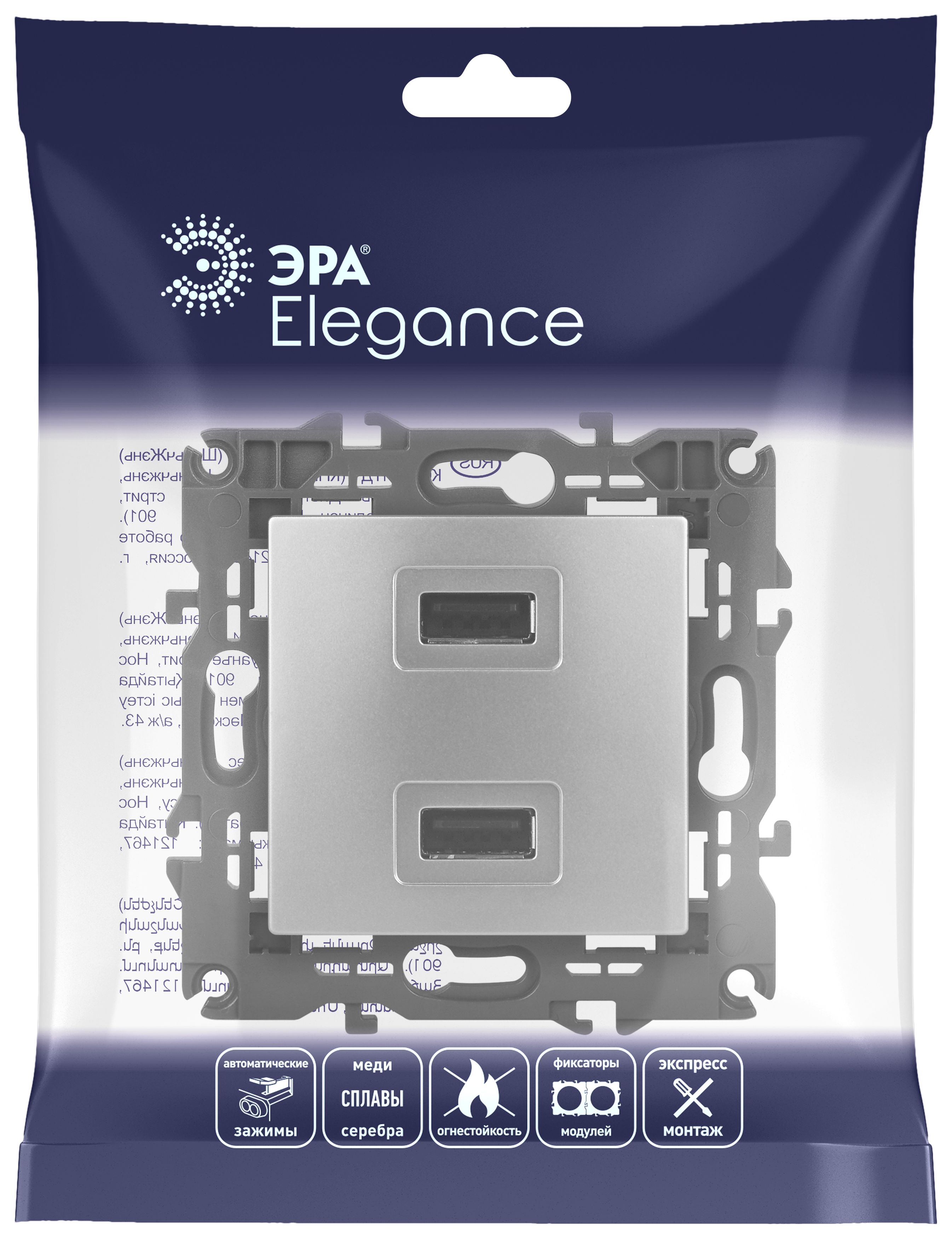 Устройство зарядное USB серии Эра Elegance цвет алюминий 14-4110-03. Номинальные характеристики . Оснащёно автоматическими клеммами для надёжной фиксации жил кабеля в механизме. Рамки приобретаются отдельно. Рамки Эра Elegance ПЛАСТИК: 1 пост 14-5001-хх, 2 поста 14-5002-хх, 3 поста 14-5003-хх, 4 поста 14-5004-хх, 5 постов 14-5005-хх; СТЕКЛО: 1 пост 14-5101-хх, 2 поста 14-5102-хх, 3 поста 14-5103-хх, 4 поста 14-5104-хх; МЕТАЛЛ: 1 пост 14-5201-хх, 2 поста 14-5202-хх, 3 поста 14-5203-хх, 4 поста 14-5204-хх; ДЕРЕВО: 1 пост 14-5301-хх, 2 поста 14-5302-хх, 3 поста 14-5303-хх, 4 поста 14-5304-хх (хх - код цвета: 00-прозрачный, 01-белый, белёный дуб, 02-слоновая кость, 03-алюминий, 04-шампань, 05-чёрный, чёрное дерево, 07-ясень, 09-дуб, 10-венге, 11-клён, 14-медь, 21-жёлтый, 22-оранжевый, 23-красный, 25-бордо, 26-лайм, 27-зелёный, 28-голубой, 29-синий, 30-розовый, 31-мокко, 32-серый, 41-сталь, 42-титан).