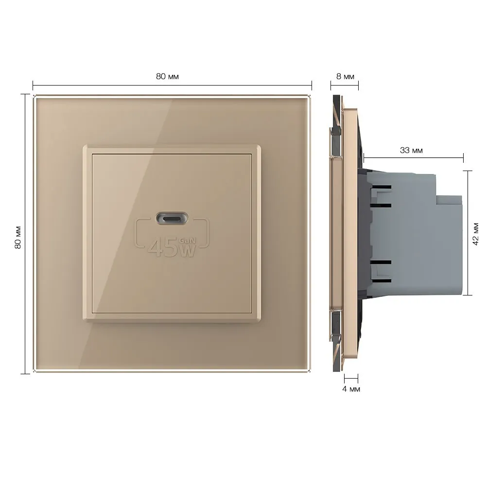 Розетка USB type-C, блоком питания 45W Livolo, 1 пост, цвет золотой
