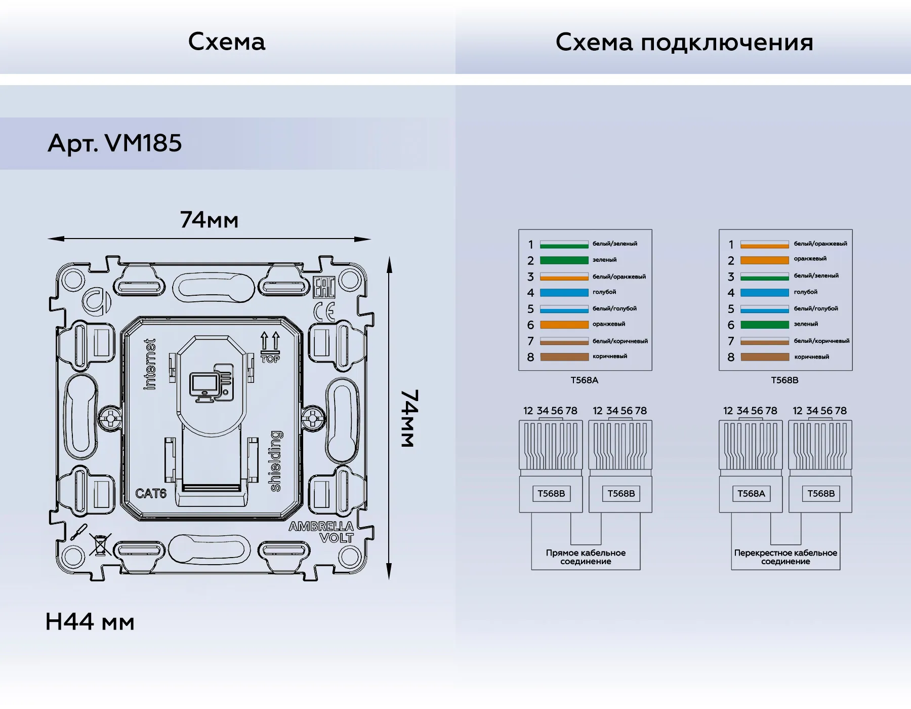 Vm185 механизм компьютерной розетки rj-45 (8p8c) cat6a экранированной с автоматической защитной шторкой quant