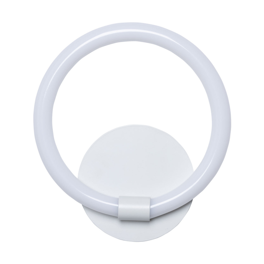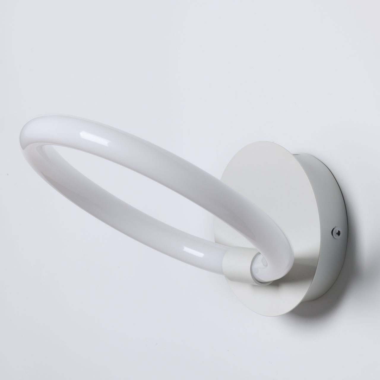 Металлическое основание настенного бра окрашено в белый цвет. Светодиодные источники света закрыты белым матовым акрилом.