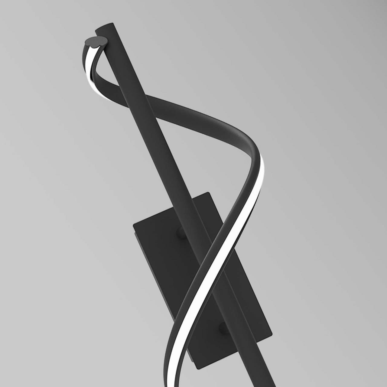 Каркас из металла черного матового цвета, рассеиватель из белого, непрозрачного акрила, прикрепленный к декоративному элементу в виде волны, встроенная LEDлента.