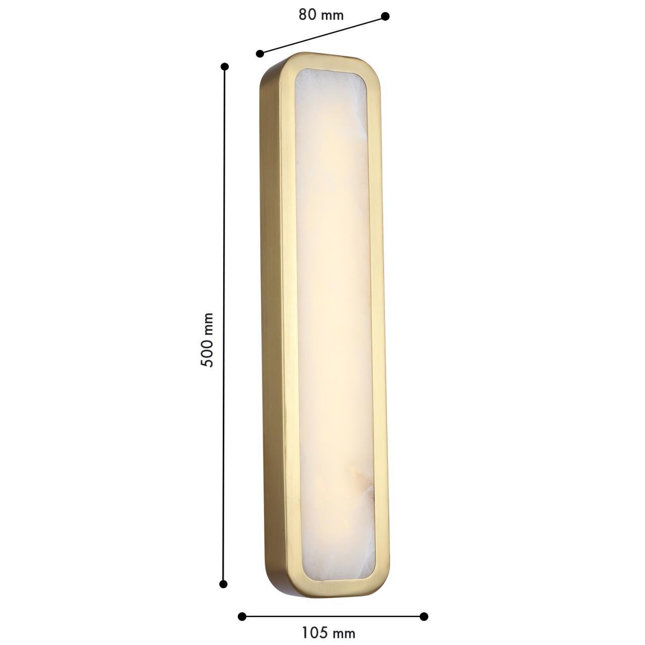 Металлический корпус в цвете латунь, экран из натурального бежевого алебастра, источник света LED внутри.