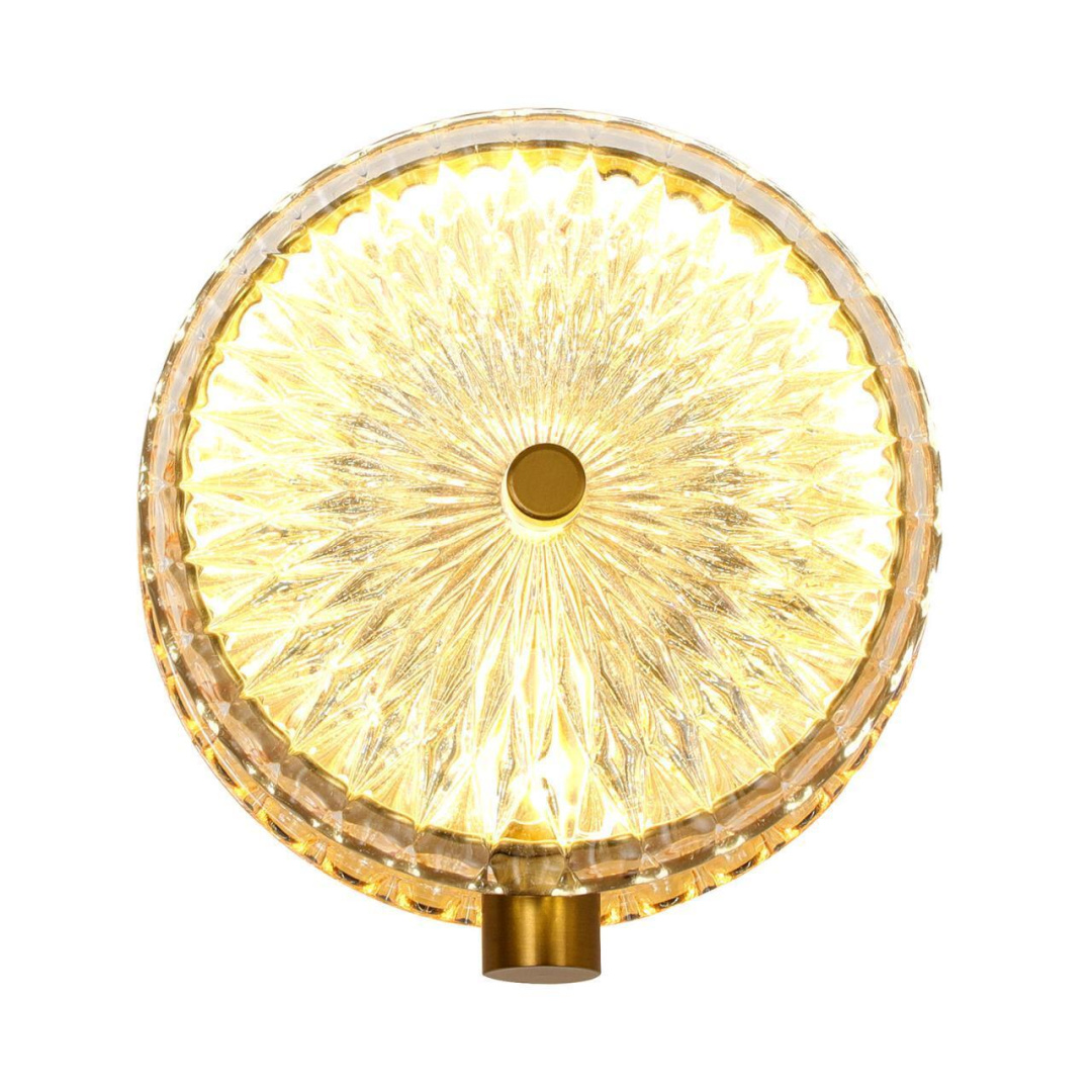 Каркас черного цвета, плафон состоит из двух узорных стеклянных дисков прозрачного и янтарного цвета, внутри которых расположен LEDмодуль, регулируемая высота.