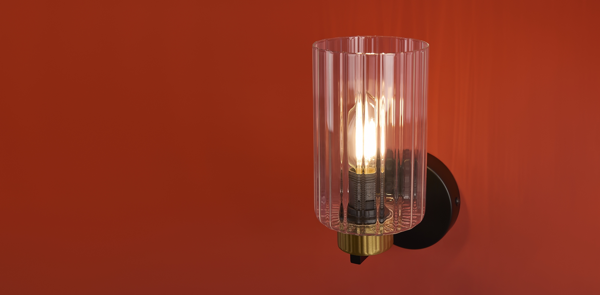 Металлическая арматура чёрного матового цвета с латунными вставками. Прозрачные цилиндрические стеклянные абажуры. Лампы E14 (не включены). Трендовое сочетание для современных интерьеров.