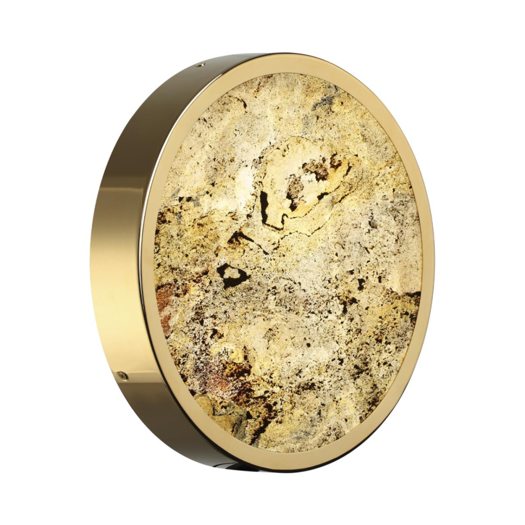 Наряду с моделями с лампой Е27 в линии Bergi есть светодиодные светильники — настенно-потолочные светильники диаметром 300,400,500,600мм, бра, подвес с рассеивателем из натурального природного материала — stone flake — в переводе «каменные хлопья». Тончайший срез (слой) каменной породы наносится на пластиковую подложку для придания формы плафону. Уникальность этого материала в том, что сохраняется красивая природная структура камня с ее неровностями и наслоениями, поэтому поверхность слегка шероховатая. В разных цветовых температурах LED цвет плафона имеет разный оттенок и каждый может выбрать ту цветовую температуру, которая подходит для интерьера. Для удобства выбора цветовой температуры в светильниках есть переключатель с выбором 3000К–4000К–6000К. Светодиодный подвес линии Bergi оснащен шарниром, который позволяет фиксировать различный наклон плафона и создавать красивые композиции.Глянцевый отблеск золотого  цвета  арматуры придает особый шик коллекции Bergi gold и позволяет разместить светильники в люкс