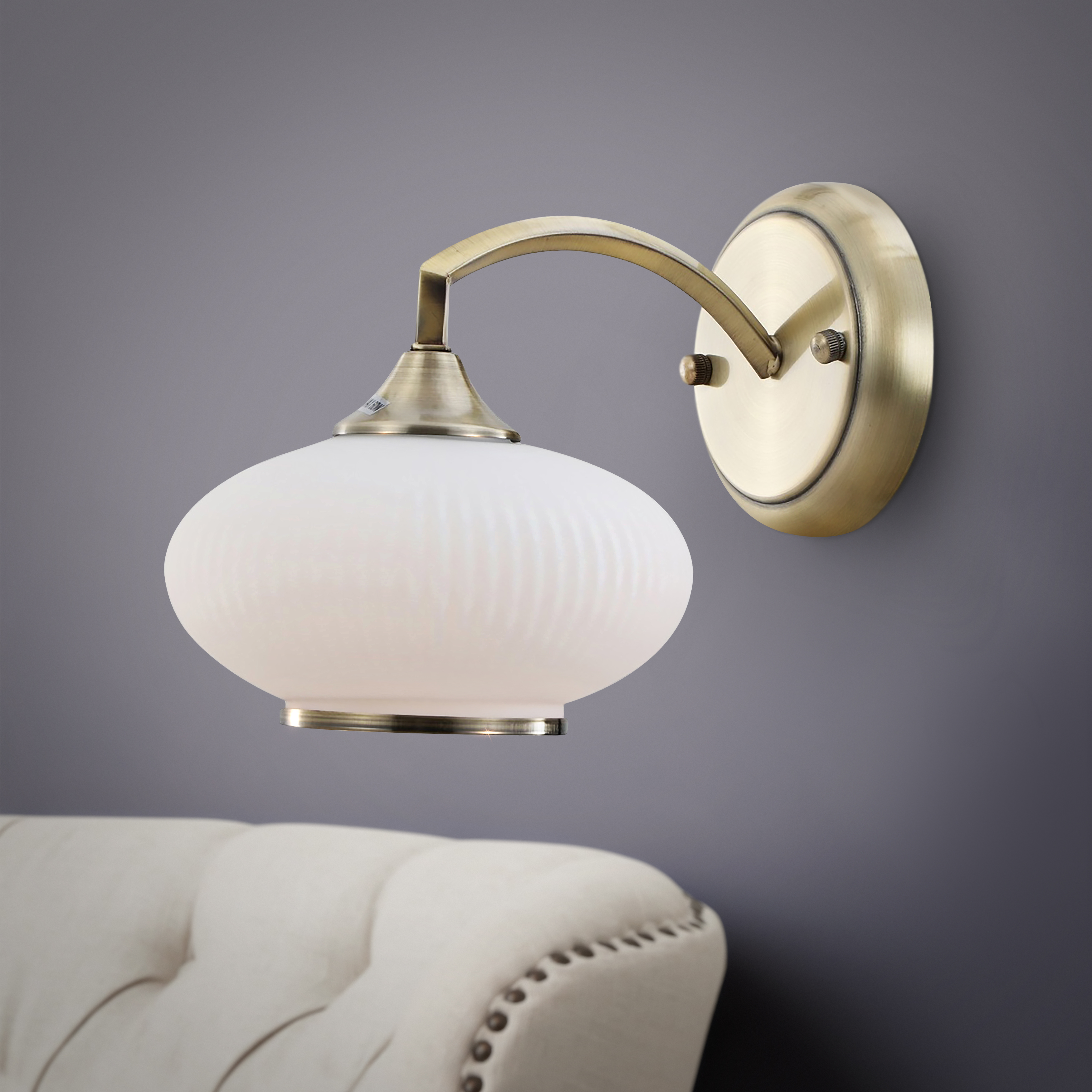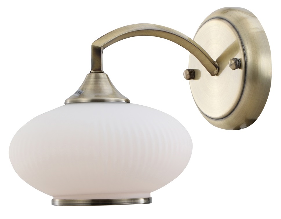 Классический светильник настенный с овальным плафоном из матового стекла «в рубчик» и металлическим основанием цвета античная бронза. В коллекцию Rivoli Avarice входит бра (арт. 2077-401), люстра с 5 плафонами (арт. 2077-305), люстра с 7 плафонами (арт. 2077-307). Особая стилистика дизайнерской коллекции позволяет с успехом применять люстры и светильники Rivoli Avarice в интерьерах восточного, классического стиля, стилей лофт-кантри, эклектика и современная классика. Это делает люстры и светильники Avarice универсальными, их стоит рассмотреть для любой квартиры, студии или загородного дома после ремонта. Цвет античная бронза в сочетании с белыми стеклянными плафонами делает интерьер уютным. Светильник-бра настенный Rivoli Avarice под лампу Е27 60 Вт помогает организовать дополнительное освещение площади до 3 м2.