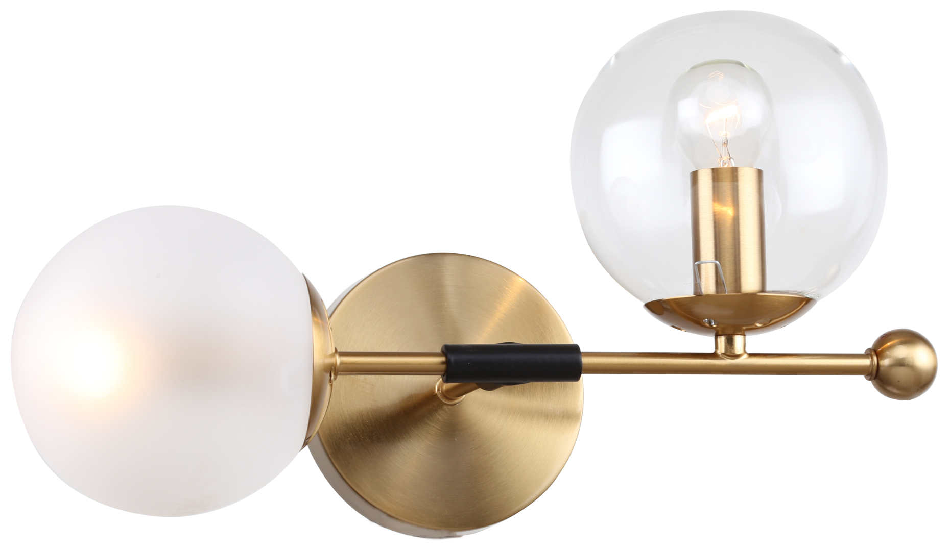 Бра настенное цвета латунь от итальянского бренда Rivoli. Бра имеет 2 круглых плафона – прозрачный и матовый. Выполненное в стиле модерн, бра Rivoli Darlene (арт. 3145-402) отличается запоминающимися декоративными находками. Прозрачный стеклянный плафон светильника настенного представлен в виде канделябра. Круглое латунное основание бра настенного сочетается с плафонами аналогичной круглой формы. Для контрастности данный настенный светильник имеет декоративный элемент чёрного цвета по центру. Корпус бра минималистичен.