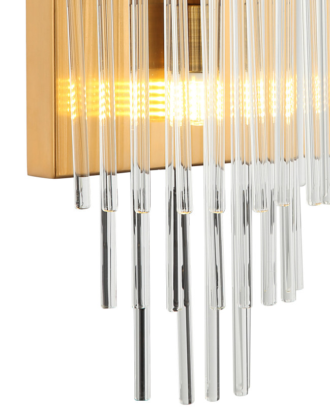 Светильник настенный из коллекции Eclipse выполнен из металла, гальванизированного в цвет бронзы, и декорирована стеклянными трубочками, установленными на прозрачный акрил. Декор окружён кантом из металла, гальванизированного в цвет арматуры. Современная форма и высокое качество светильников идеально подойдут как в классические, так и современные интерьеры.