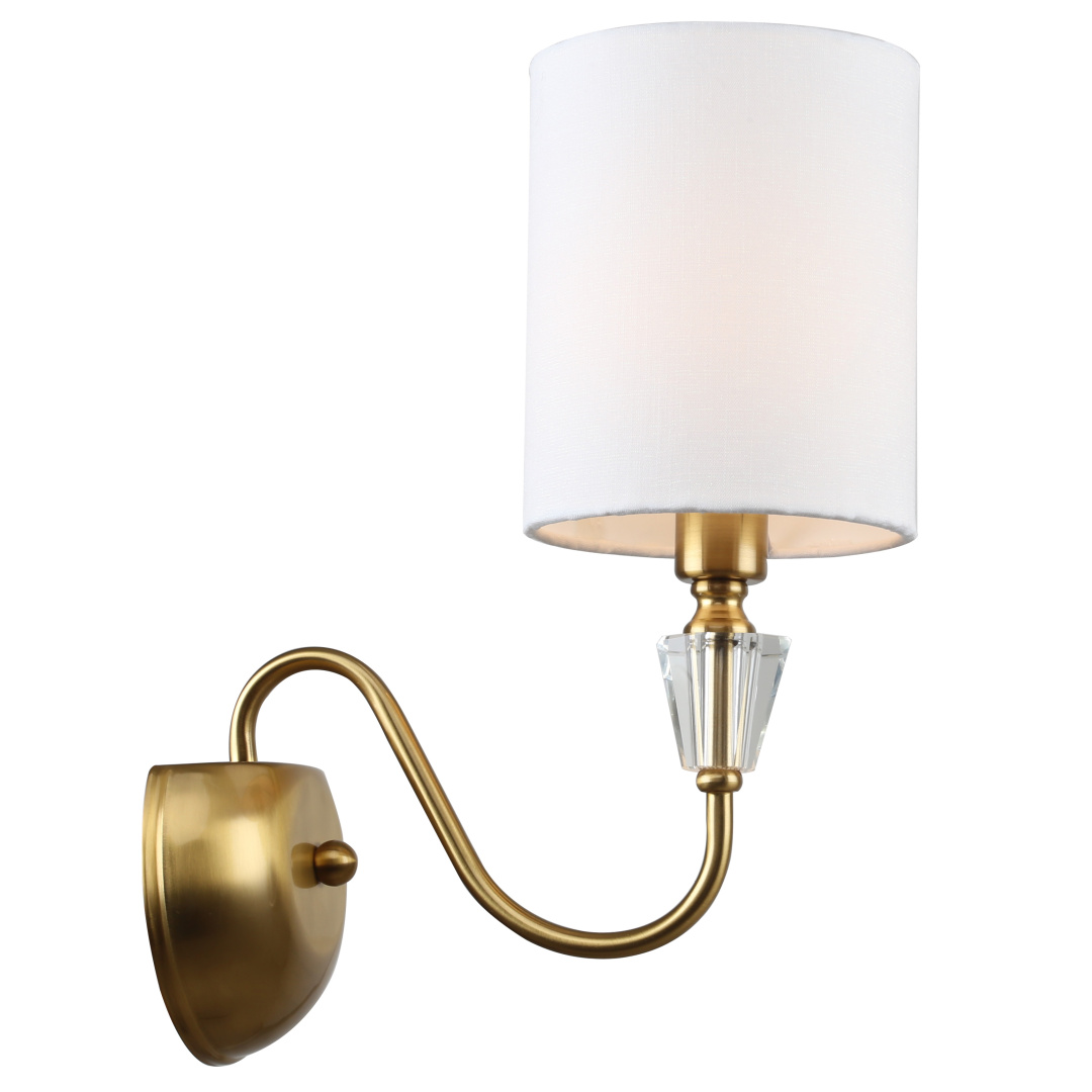 Светильник настенный из коллекции Estetio выполнен из металла, гальванизированного в цвет бронзы, и декорирован прозрачным массивом хрусталя. Текстильный абажур белого цвета с термостойким акрилом внутри создает мягкий рассеянный свет. Премиальное качество и неповторимыи? дизаи?н светильников идеально подои?дут как в классические, так и современные интерьеры.