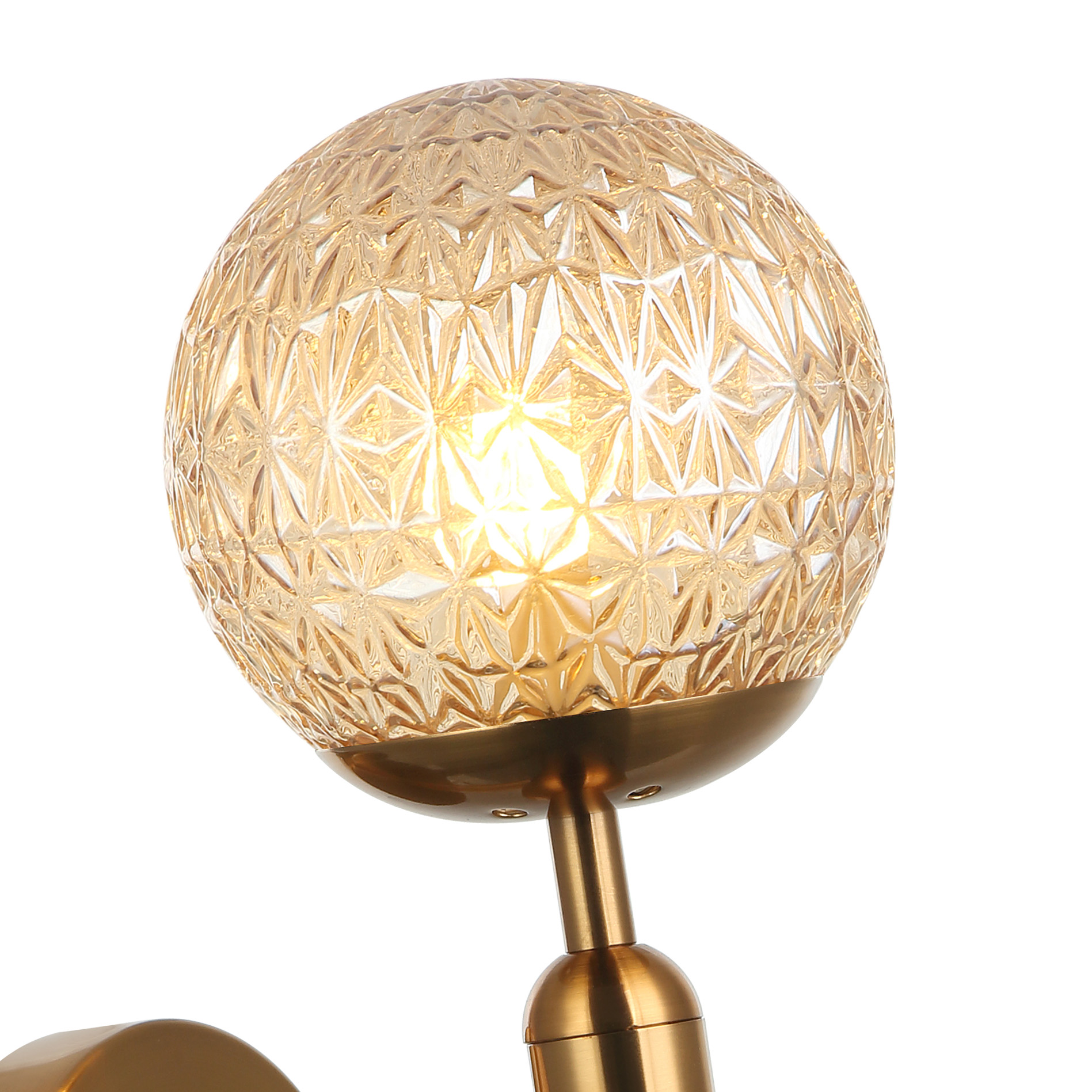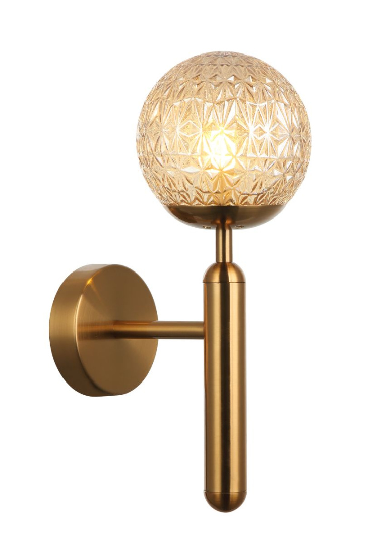 Светильник настенный из коллекции Felis выполнен из металла, гальванизированного в цвет бронзы, и декорирован плафоном из фактурного стекла янтарного цвета.