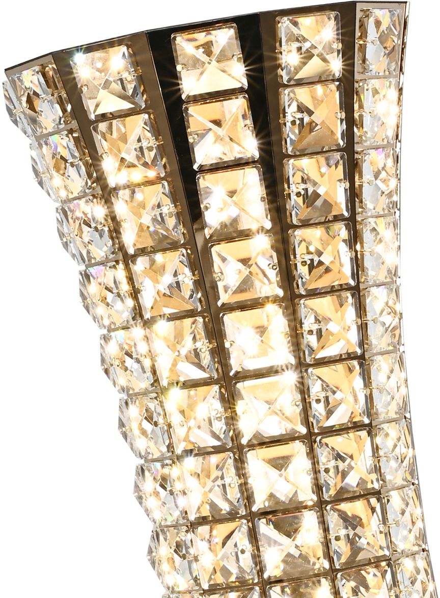 Светильник настенный эксклюзивной коллекции Karnelli выполнен из нержавеющей стали золотого цвета и декорирован текстурным хрусталем высшей категории. Модель комплектуется пультом дистанционного управления 2,4G и драйвером высокого качества европейского стандарта T?V, обеспечивающим переключение трех режимов световой температуры и диммирование. Премиальное качество и неповторимыи? дизаи?н светильников идеально подои?дут как в классические, так и современные дизайнерские интерьеры. Из данной коллекции светильников можно сделать индивидуальный заказ любого цвета и размера.