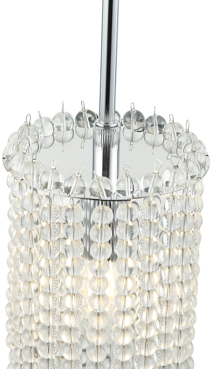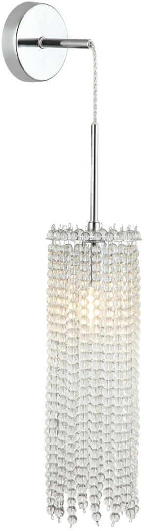 Светильник настенный коллекции Marelli выполнен из металла, гальванизированного в цвет хрома, и декорирован прозрачными стеклянными сферами, собранными в элегантные бусы..