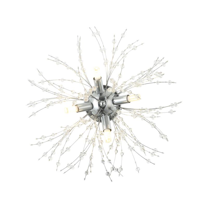 Светильник потолочный настенный из коллекции Salut выполнен из металла, гальванизированного в цвет хрома, и декорирован хрустальными бусинами, имитирующими салют.