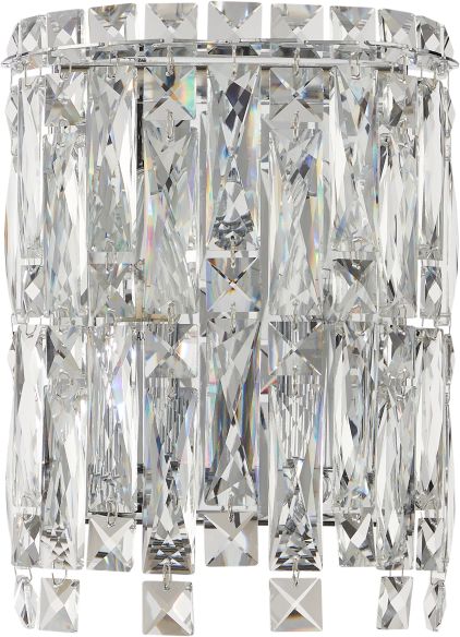Светильник настенный из коллекции Santorini выполнен из металла, гальванизированного в цвет хрома, и декорирован узкими прямоугольными подвесками из хрусталя высшего качества.