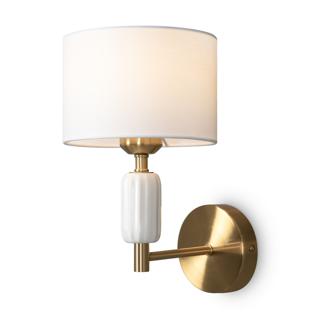 Серия Ceram сочетает керамический рельефный белый декор с тканевыми абажурами, обеспечивающими мягкое рассеивание света. Тканевые абажуры Ceram идеальны как для дома, так и для сферы HoReCa. Серия включает настенное бра, подвесной светильник и настольную лампу. Арматура — металл в латунном цвете. Комбинация керамики, ткани и латуни впишется в любой дизайн интерьера.