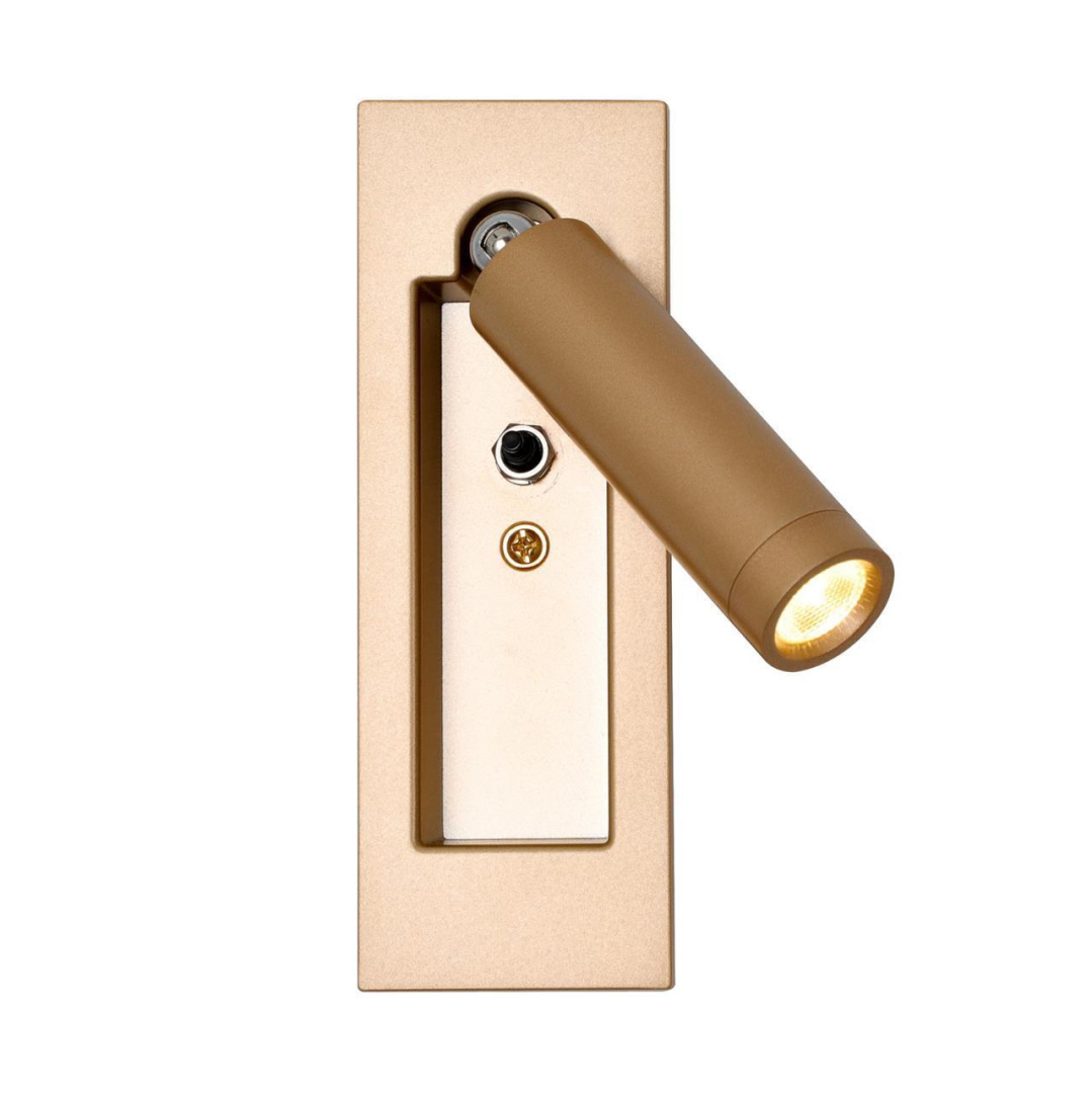 Врезной светильник с каркасом в цвете гальваническое золото, встроенный выключатель активируется выдвижением плафона, угол поворота 90° и 350°.