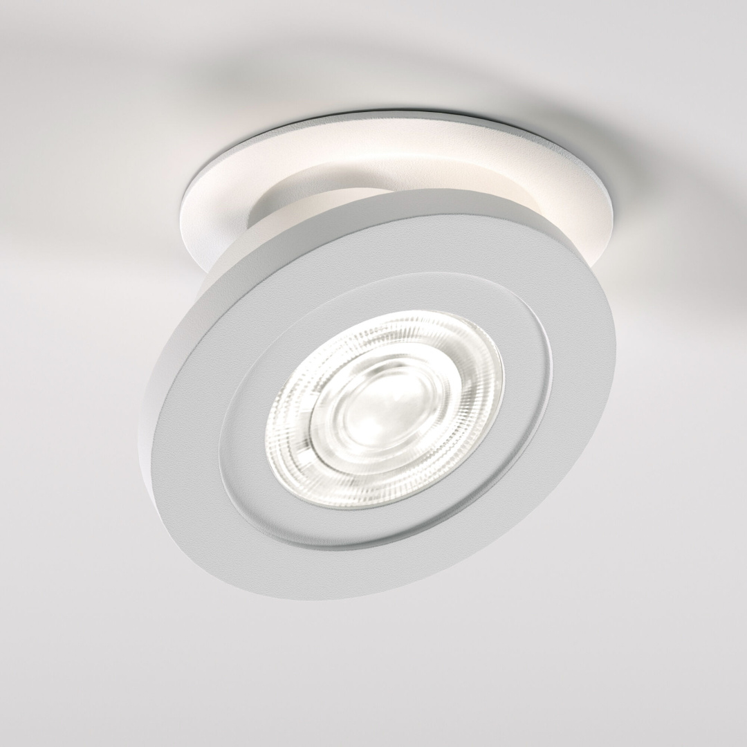 Встроенные яркие LED светодиоды мощностью 6 Вт образуют световой поток 560 лм и имеют комфортную цветовую температуру 4200 К. В производстве светодиодного светильника использованы высококачественный металл и надежное термостойкое окрашивание. Акцентный светильник легко устанавливается на гипсокартонные конструкции, подвесные и натяжные потолки.